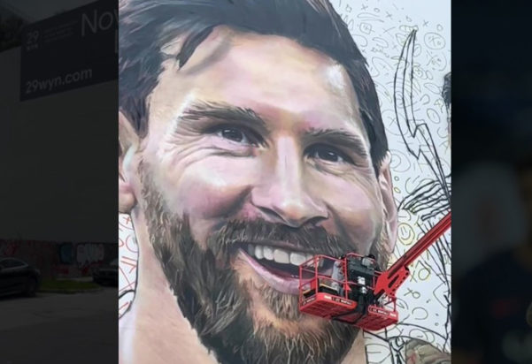 Όπως φαίνεται στο βίντεο που ανήρτησε η Βικτόρια Μπέκαμ στο Instagram, μια τεράστια τοιχογραφία έχει δημιουργηθεί στο Μαϊάμι προς τιμήν του Λιονέλ Μέσι με τον ιδιοκτήτη της Ίντερ Μαϊάμι Ντέιβιντ Μπέκαμ να ανεβαίνει σε γερανό και προκειμένου να προσθέτει τις τελευταίες πινελιές.