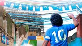 Μια εικόνα δείχνει έναν γαλάζιο ουρανό με τις λέξεις «Νάπολι Πρωταθλήτρια Ιταλίας» και «Σίγουρα γιορτάζεις, ο ουρανός γιορτάζει», αναφερόμενη στον Ντιέγκο που πέθανε σχεδόν τρία χρόνια πριν, και είχε οδηγήσει τη μπλε ομάδα στην κατάκτηση των δύο πρώτων τίτλων.