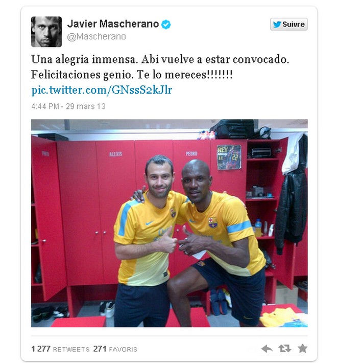 Την είδηση ανακοίνωσε ουσιαστικά ο Χαβιέ Μασεράνο, μέσω του προφίλ του στο «Twitter», γράφοντας: «Νιώθω μία απέραντη χαρά. Ο Άμπι είναι στην αποστολή. Συγχαρητήρια. Το αξίζεις!!!!».