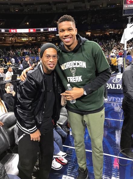 Εν αναμονή του All Star Game του NBA στη Νέα Ορλεάνη βρίσκονται όλοι οι φίλοι του μπάσκετ και ειδικά οι Έλληνες που θα έχουμε την ευκαιρία να απολαύσουμε τη συμμετοχή του Γιάννη Αντετοκούνμπο.Ο Έλληνας διεθνής παρακολούθησε μαζί με την οικογένειά του τον αγώνα των celebrities και συνάντησε τον Ροναλντίνιο με τον οποίο μάλιστα φωτογραφήθηκε.«Ένα από τα ινδάλματά μου εκτός μπάσκετ» ήταν το συνοδευτικό σχόλιο του Αντετοκούνμπο στη φωτογραφία που ανέβασε στον προσωπικό του λογαριασμό στο Instagram.