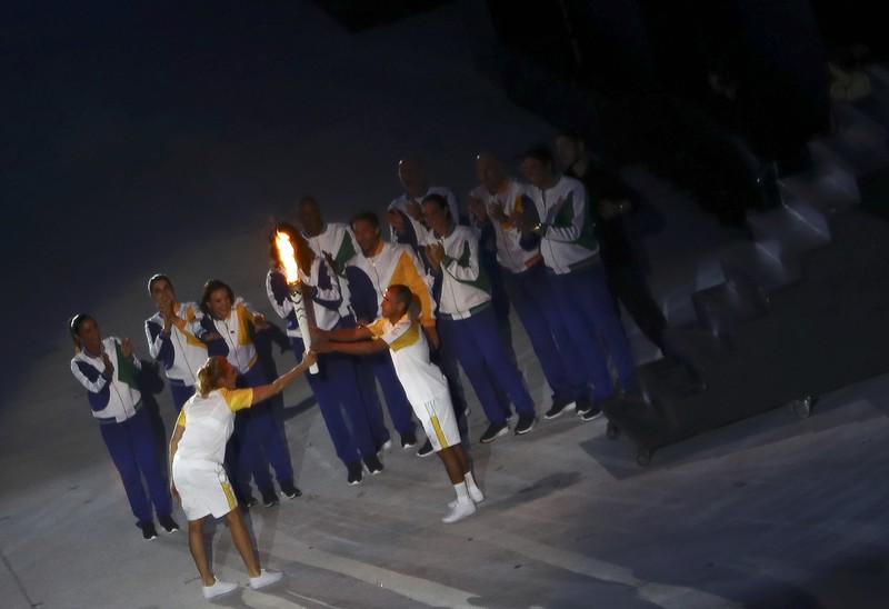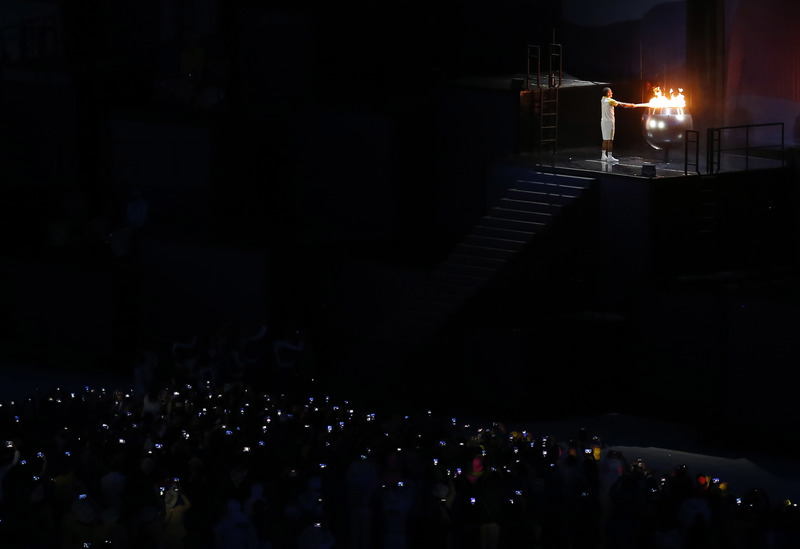 #Rio2016 Olympic Cauldron lit up by marathon runner Vanderlei Cordeiro de Lima at #OpeningCeremony pic.twitter.com/U7uOTYcWLF