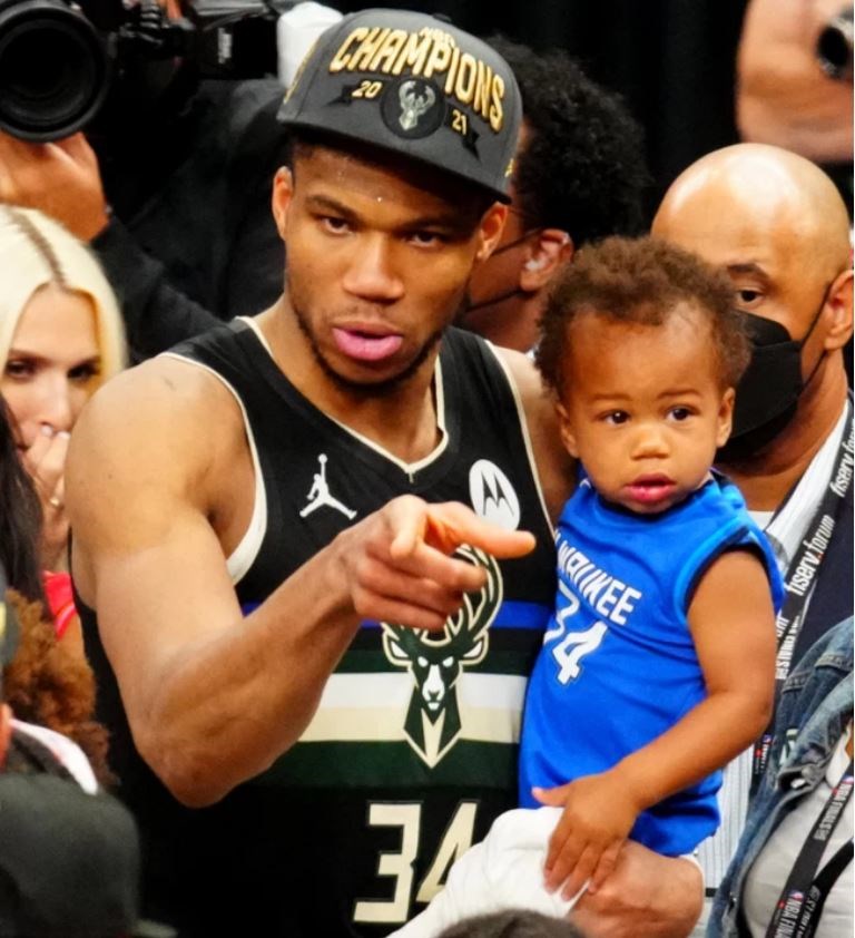 Οι στιγμές που εκτυλίχθηκαν με τη λήξη του αγώνα ήταν συγκλονιστικές. O “Greek Freak”, με δάκρυα στα μάτια τρέχει στην εξέδρα και πέφτει στην αγκαλιά της μητέρας του. Με τα μάτια του αναζητεί τη γυναίκα της ζωής του, η οποία τρέχει πάνω του με φουσκωμένη την κοιλιά ενώ στα χέρια της κρατά τον γιο τους. Ο Γιάννης Αντετοκούνμπο ξεσπά σε δάκρυα, παίρνει στα χέρια του το παιδί του και το σηκώνει ψηλά.