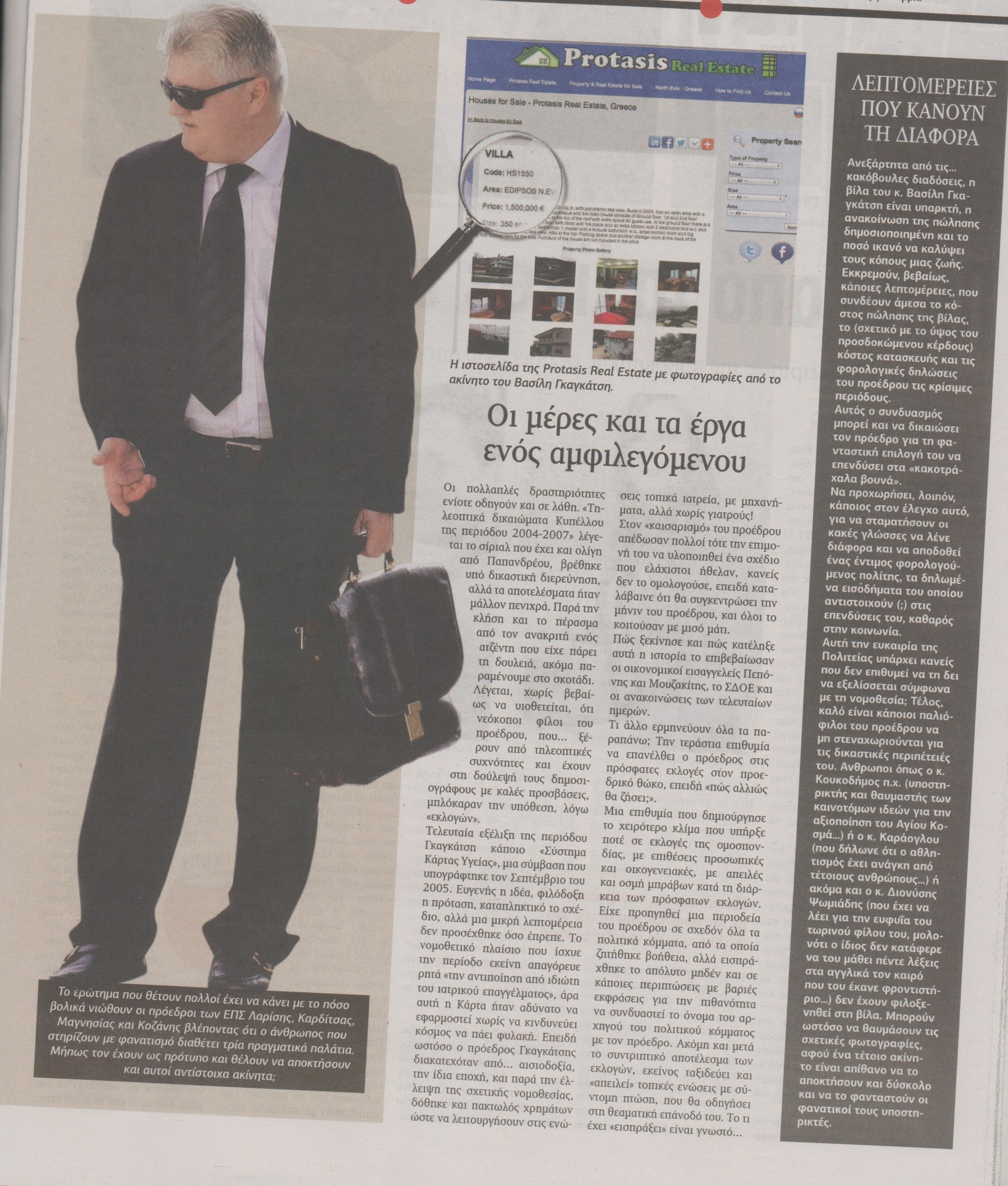 Η εφημερίδα σημειώνει επίσης ότι οι κακές γλώσσες λένε ότι δύο-τρία έπιπλα (μεταξύ των οποίων και ένα γραφείο) είχαν “μεταφερθεί” από τα γραφεία της ΕΠΟ στη βίλα, ενώ τώρα τα έπιπλα έχουν μεταφερθεί από την Εύβοια στο Μαρκόπουλο, όπου οικοδομήθηκε νέα κατοικία.