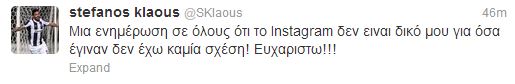Ο επιθετικός του ΠΑΟΚ, Κλάους Αθανασιάδης, πριν από λίγη ώρα, με μια του ανάρτηση διέψευσε ότι έχει οποιαδήποτε σχέση με τον λογαριασμό ή τον χρήστη στο twitter, που ανέβασε τη φωτογραφία του Γεώργιου Παπαδόπουλου.