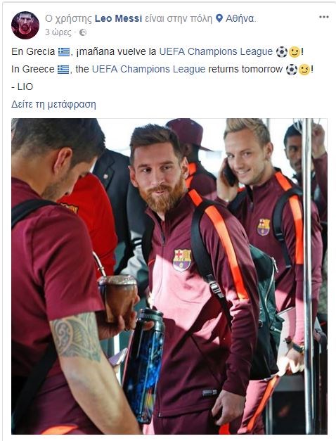 “Στην Ελλάδα, το Champions League επιστρέφει αύριο” έγραψε ο Αργεντινός άσος.