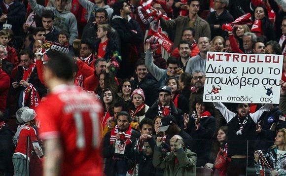 Φρενίτιδα ενθουσιασμού επικρατεί στις τάξεις των οπαδών της Μπενφίκα για τον Κώστα Μήτρογλου.Ο Έλληνας διεθνής διανύει περίοδο μεγάλης φόρμας, καθώς σκοράρει ακατάπαυστα για λογαριασμό των «αετών». Αυτό έχει ως αποτέλεσμα οι φίλοι της πορτογαλικής ομάδας να τον αποθεώνουν με κάθε ευκαιρία και να προσπαθούν μέχρι και ελληνικά να μάθουν για χάρη του.Ένας φίλος της Μπενφίκα σήκωσε ένα πλακάτ με μήνυμα στα ελληνικά προς τον Μήτρογλου, το οποίο δεν έβγαζε και πολύ νόημα, καθώς δεν αποκλείεται, για να το γράψει να χρησιμοποίησε κάποιο μεταφραστή από το διαδίκτυο. «Μήτρογλου δώσε μου το πουλόβερ σου, είμαι οπαδός σας», ήταν το μήνυμα του Πορτογάλου θαυμαστή του Έλληνα διεθνούς, ενώ το μήνυμα μάλλον εννοούσε «Μήτρογλου δώσε μου τη φανέλα σου, είμαι θαυμαστής σου»ΠΗΓΗ: Filathlos.gr