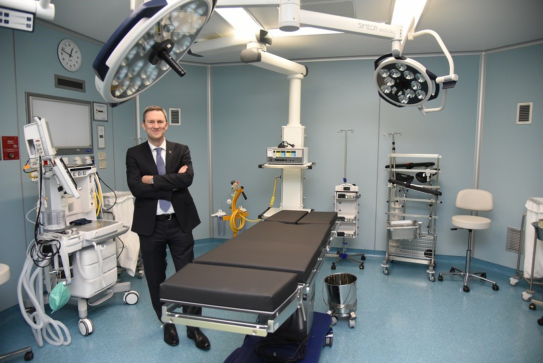 Ντάμιαν Κόουπ Διευθύνων Σύμβουλος ΟΠΑΠ στο χώρο του χειρουργείου στην ανακαινισμένη Μονάδα Ημερήσιας Νοσηλείας του Παιδιατρικού Νοσοκομείου ‘Η Αγία Σοφία’