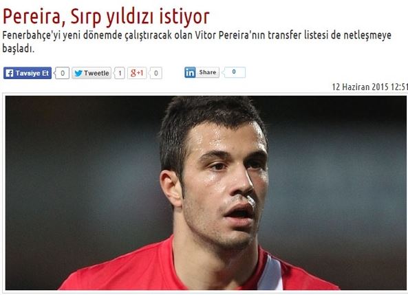 Κάθε μέρα οι Τούρκοι γράφουν για πιθανούς στόχους της Φενέρ από τον Ολυμπιακό λόγω της παρουσίας του Βίτορ Περέιρα στον πάγκο της τουρκικής ομάδας.