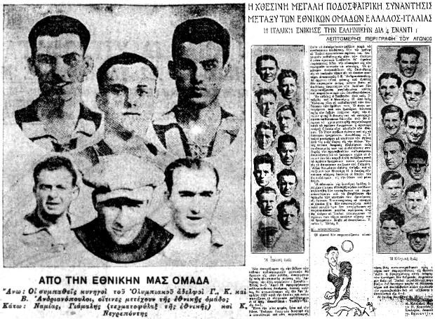 Στις 7 Απριλίου του 1929 διεξήχθη στο γήπεδο της Λεωφόρου Αλεξάνδρας ο πρώτος διεθνής αγώνας της Εθνικής Ελλάδας στο ποδόσφαιρο. Ήταν φιλικός, με αντίπαλο τα «δεύτερα» της Ιταλίας, από τα οποία έχασε με το τιμητικό 4-1.Στο παρελθόν, το αντιπροσωπευτικό μας συγκρότημα είχε δώσει κάποιους αγώνες, αλλά αυτός ήταν ο πρώτος υπό την αιγίδα της Ελληνικής Ποδοσφαιρικής Ομοσπονδίας (ΕΠΟ), που είχε ιδρυθεί το 1926 και είχε αναγνωρισθεί από τη FIFA.Την πρώτη αυτή συνάντηση της Εθνικής μας ομάδας παρακολούθησαν αρκετοί φίλαθλοι (υπολογίζονται σε 15.000), που γέμισαν ασφυκτικά τη «Λεωφόρο» δύο ώρες πριν από την έναρξη του αγώνα, καθώς και σχεδόν όλη η κοσμική Αθήνα της εποχής εκείνης. Στην εξέδρα των επισήμων βρέθηκε και η κόρη του Ιταλού δικτάτορα Μπενίτο Μουσολίνι, η 19χρονη Έντα Μουσολίνι, που βρισκόταν στην Αθήνα για τουρισμό. Εκείνο το κυριακάτικο απόγευμα φυσούσε πολύ και η σκόνη που σηκωνόταν εμπόδιζε τις κινήσεις των παιχτών και προκαλούσε τη δυσφορία των θεατών.Η Ιταλία εκείνη την περίοδο ήταν παγκόσμια δύναμη στο ποδόσφαιρο και δεν καταδέχθηκε να στείλει στην Αθήνα την πρώτη της ομάδα. Όμως και η δεύτερη ομάδα που παρατάχθηκε στο γήπεδο ήταν πανίσχυρη, με παίχτες που αγωνίζονταν στις μεγάλες ομάδες του κάλτσιο. Την αποτελούσαν οι: Ντεγκάνι (Ιντερ) – Μοντζέλιο (Ρόμα), Μαρτίν (Τορίνο), Άβαλε (Αλεσάντρια), Σκαλτρίτι (Μπρέσια), Καστελάτσι (Ίντερ), Κονσταντίνο (Μπάρι), Μπουσίνι (Μπολόνια), Βολκ (Ρόμα), Τσεβενίνι (Γιουβέντους) και Τανσίνι (Μίλαν).Ο προπονητής της Εθνικής μας, Απόστολος Νικολαΐδης (ο μετέπειτα πρόεδρος του Παναθηναϊκού), επέλεξε τους εξής έντεκα: Γιάµαλης (ΑΕΚ) – Φερλέµης (Εθνικός Π.), Βόγας (Ηρακλής Θ.), Ανδρίτσος (Παναθηναϊκός), Κωνσταντινίδης (ΑΕΚ), Απόστολος Μεσσάρης (Παναθηναϊκός), Ναµίας (Ηρακλής Θ.), Άγγελος Μεσσάρης (Παναθηναϊκός), Γιώργος Ανδριανόπουλος (Ολυμπιακός), Ντίνος Ανδριανόπουλος (Ολυμπιακός) και Βασίλης Ανδριανόπουλος (Ολυμπιακός).Στις 3:15 μ.μ. ο Ούγγρος διαιτητής Καν, «ο πλέον …παχύσαρκος εντός του γηπέδου», σύμφωνα με τα δημοσιεύματα της εποχής, σφύριξε το εναρκτήριο λάκτισμα. Στο πρώτο ημίχρονο η εθνική μας αγωνίστηκε συγκρατημένα και κατόρθωσε να περιορίσει τη δραστηριότητα των Ιταλών, που προηγήθηκαν, πάντως, με 1-0, με τέρμα του Τσεβενίνι στο 35ο λεπτό. Στην επανάληψη, ο δαιμόνιος επιθετικός του Ηρακλή, Ναμίας, ισοφάρισε στο 60ο λεπτό εν μέσω πανζουρλισμού και έγινε έτσι ο πρώτος σκόρερ στην ιστορία της εθνικής Ελλάδας. Ο εβραϊκής καταγωγής Αλμπέρτο Ναχμία, όπως ήταν το πραγματικό του όνομα, αγωνιζόταν στη θέση του δεξιού εξτρέμ και υπήρξε ένας από τους κορυφαίους Έλληνες ποδοσφαιριστές της προπολεμικής περιόδου. Οι Ιταλοί αφυπνίστηκαν αμέσως και εκμεταλλευόμενοι την καλή τους φυσική κατάσταση και τα πλούσια αθλητικά τους προσόντα («Οι ημέτεροι συγκρινόμενοι με αυτούς εφαίνοντο σαν μικρά παιδιά» έγραψε ο Τύπος), επικράτησαν πλήρως στη συνέχεια και σημείωσαν τρία τέρματα με τους Βολκ (65′), Τσεβενίνι (68′) και Τανσίνι (80′), για να κατακτήσουν τελικά τη νίκη με 4-1, κερδίζοντας τον θαυμασμό και το ζεστό χειροκρότημα των Ελλήνων φιλάθλων.