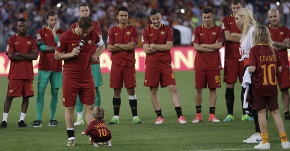 Μετά από 25 χρόνια αδιάλειπτης προσφοράς στη Ρόμα, ο εμβληματικός capitano είπε αντίο, χωρίς να καταφέρει να συγκρατήσει τα δάκρυά του, όπως και οι περισσότεροι από τους 70.000 θεατές που είχαν κατακλύσει το Ολίμπικο.
