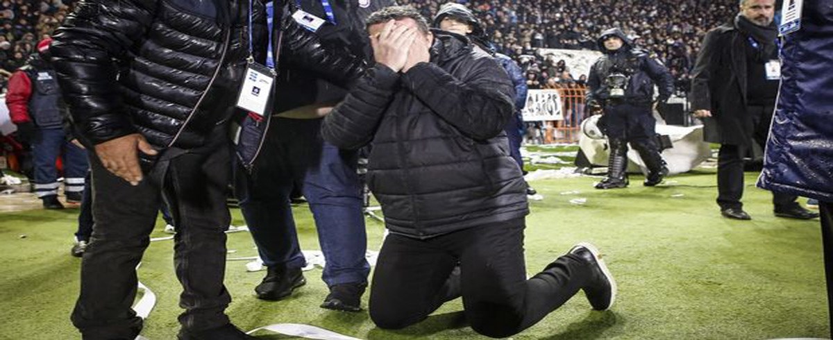 Ένα αντικείμενο έπεσε στον ερυθρόλευκο πάγκο και κτύπησε τον προπονητή των Πειραιωτών Όσκαρ Γκαρθία.