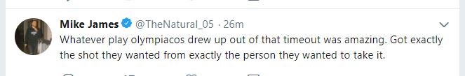 «Ό,τι play σχεδίασε ο Ολυμπιακός στο τάιμ άουτ ήταν απίθανο. Πήρε ακριβώς το σουτ που ήθελε, ακριβώς από τον παίκτη που ήθελε να το πάρει».