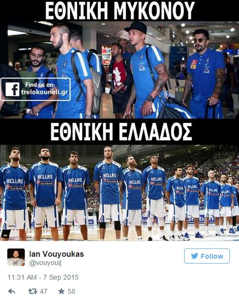 Αυτή την περίοδο τα βλέμματα όλων είναι στραμμένα στην Εθνική του μπάσκετ που δίνει τη δική της “μάχη” στο Eurobasket 2015. Η αντίστοιχη ομάδα στο ποδόσφαιρο περνάει δύσκολες στιγμές κι ο Ίαν Βουγιούκας δεν έχασε την ευκαιρία να… τρολάρει την Εθνική Μυκόνου, όπως ανέφερε χαρακτηριστικά.
