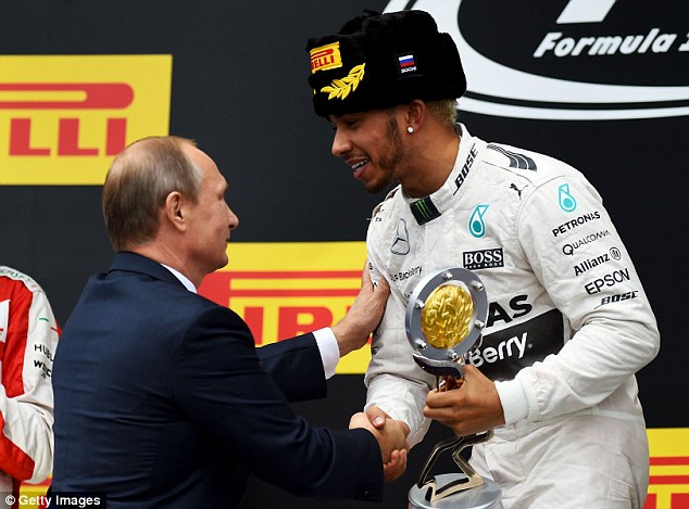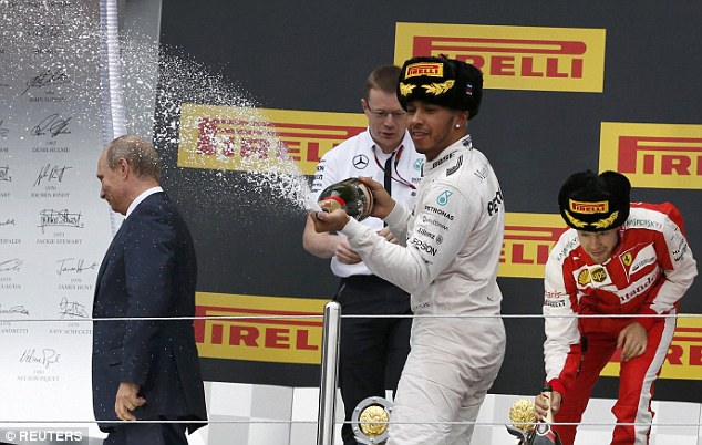 Ο Λούις Χάμιλτον γιόρτασε τη νίκη του στο Grand Prix του Σότσι “λούζοντας” με σαμπάνια τον πρόεδρο της Ρωσίας Βλαντιμίρ Πούτιν.