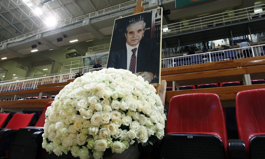 Με το που η αποστολή του Παναθηναϊκού βγήκε στο παρκέ για ζέσταμα, άπαντες κατευθύνθηκαν προς τη φωτογραφία του εμβληματικού παράγοντα στα επίσημα του κλειστού.