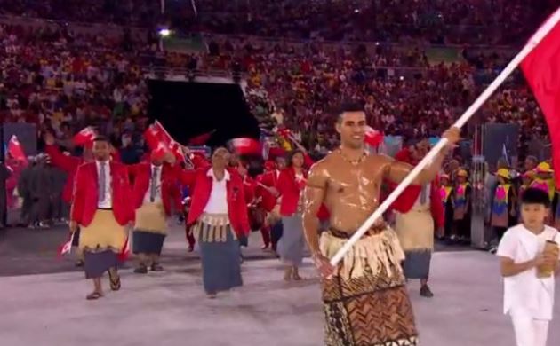 Ο αθλητής που κρατούσε τη σημαία των νησιών Τόνγκα, Πίτα Νίκολας Ταουφατοφούα, ήταν αυτός που συγκέντρωσε τα περισσότερα βλέμματα πάνω του, καθώς μπήκε στο μπήκε στο Μαρακανά, ημίγυμνος, με λαδωμένο το κορμί του και φορώντας την παραδοσιακή στολή της χώρας του.