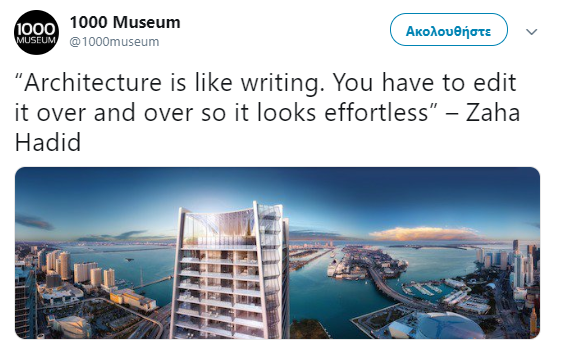 Βρίσκεται σε μία από τις καλύτερες περιοχές της Φλόριντα, στο «One Thousand Museum», έναν ουρανοξύστη σχεδιασμένο από τη διάσημη Ιρακινή αρχιτέκτονα Ζάχα Χαντίντ, βραβευμένη δύο φορές με το βραβείο «Stirling», η οποία απεβίωσε το 2016.