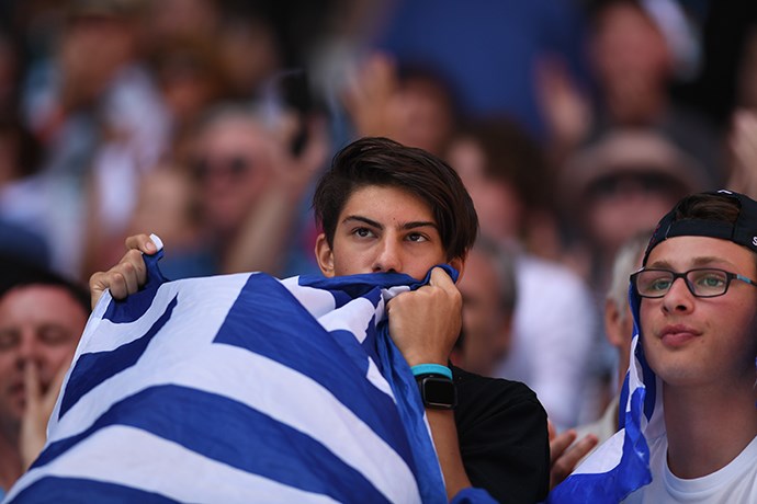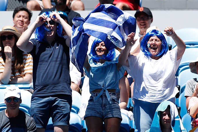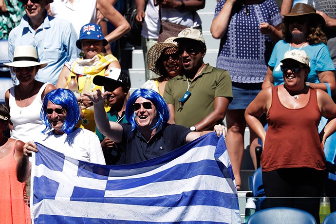 Με ελληνικές σημαίες και πανό βρέθηκαν δεκάδες φίλαθλοι εντός και εκτός του γηπέδου όπου παίχτηκε ο αγώνας του Στέφανου Τσιτσιπά.Δείτε τους έξαλλους πανηγυρισμούς για τη μεγάλη νίκη του Τσιτσιπά με 3-1 σετ επί του Μπαουτίστα που έδωσε στον Έλληνα αθλητή το εισιτήριο για τους «4» του αυστραλιανού Open.