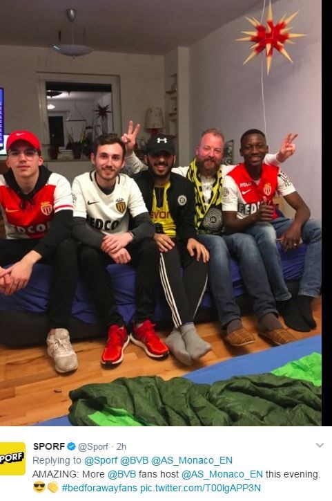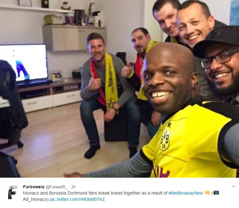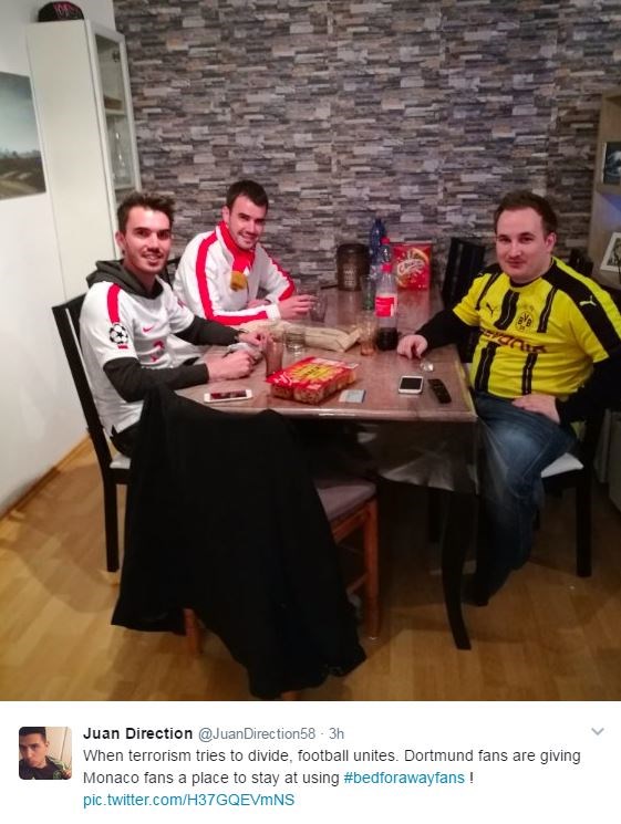 Μετά την επίθεση που έγινε εναντίον του λεωφορείου της Μπορούσια και την αναβολή του αγώνα, η ομάδα έφτιαξε γρήγορα στο Twitter το hashtag #bedforawayfans, καλώντας τους Γάλλους φίλους της Μονακό που είχαν ξεμείνει στο Ντόρτμουντ να φιλοξενηθούν σε σπίτια οπαδών της γερμανικής ομάδας. Στην πρωτοβουλία ανταποκρίθηκαν πολλοί οπαδοί της Ντόρτμουντ, οι οποίοι ανέβασαν τις σχετικές φωτογραφίες στο Twitter.