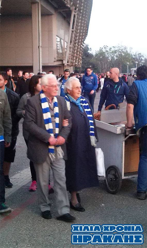 Ένα ζευγάρι ηλικιωμένων έκλεψε την παράσταση στο Καυταντζόγλειο Στάδιο την Κυριακή. Οι ηλικιωμένοι βρέθηκαν στις κερκίδες του γηπέδου του Ηρακλή για να παρακολουθήσουν την αναμέτρηση του «γηραιού» με την ΑΕΚ και η φωτογραφία τους με τα γαλανόλευκα κασκόλ έχει γίνει viral κερδίζοντας αρκετά σχόλια στα μέσα κοινωνικής δικτύωσης.