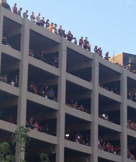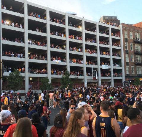 Το Κλίβελαντ ζει και αναπνέει για τον 7ο τελικό του NBA με τους Γουόριορς και οι φίλοι των Καβς έχουν ανέβει ακόμα και σε κτίριο-γκαράζ, προκειμένου να παρακολουθήσουν δωρεάν το ματς από τις γιγαντοθόνες που έχουν στηθεί στον περιβάλλοντα χώρο του «Quicken Loans Arena».