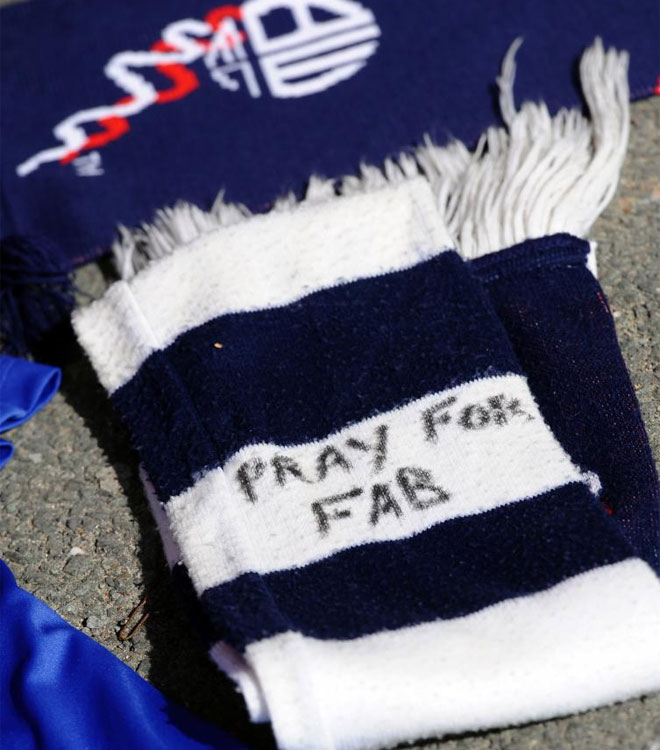 Συγκλονισμένη είναι η οικογένεια του ποδοσφαίρου στην Αγγλία από το δράμα του Φαμπρίς Μουάμπα. Ποδοσφαιριστές και φίλαθλοι εκδηλώνουν με κάθε τρόπο την συμπαράσταση τους στον άσο της Μπόλτον.