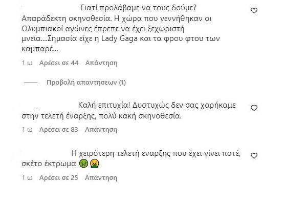 Πολλοί χρήστες του Twitter, γνωστού πλέον ως «X», αντέδρασαν αρνητικά, σχολιάζοντας πως η τελετή έμοιαζε με «καρναβάλι του Μοσχάτου», «Eurovision» και «σκηνοθεσίες του Γιάννη Δαλιανίδη».