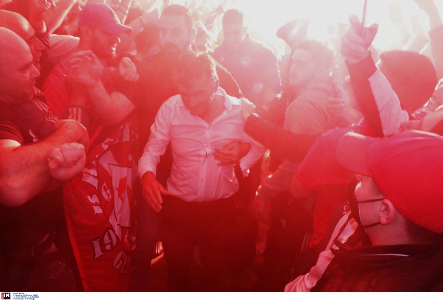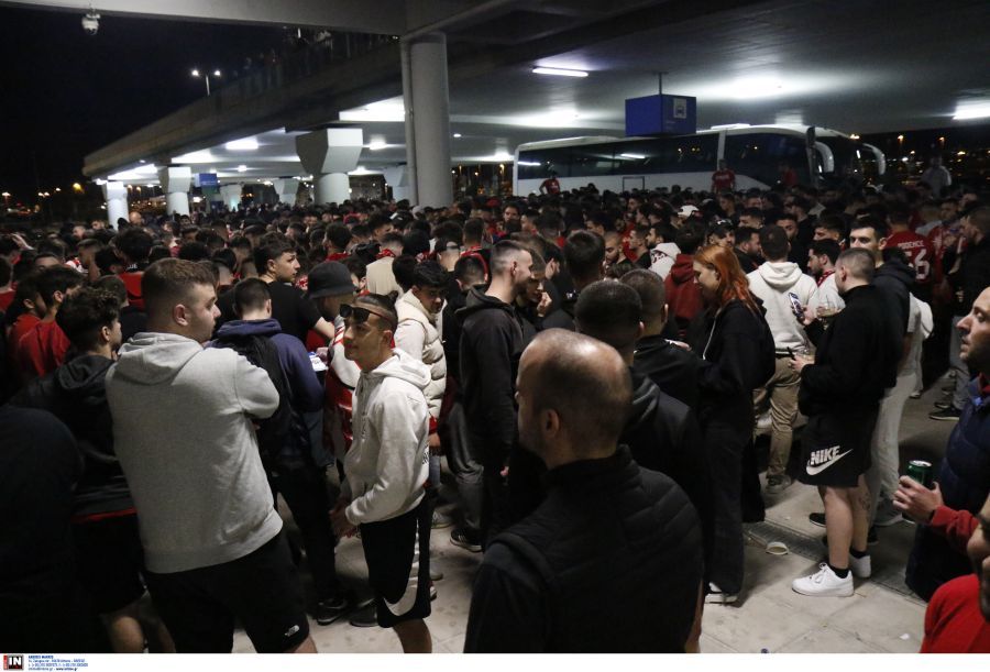 Πλήθος κόσμου είχε αρχίσει από νωρίς να μαζεύεται στο Ελ. Βενιζέλος όπου προσγειώθηκε η αποστολή του Ολυμπιακού. Φυσικά, όπως είναι λογικό ο Διεθνής Αερολιμένας Αθηνών, μετατράπηκε σε… Καραϊσκάκη, καθώς οι φίλοι των Πειραιωτών έφτιαξαν μια τρομερή ατμόσφαιρα υποδεχόμενοι την «ερυθρόλευκη» αποστολή.