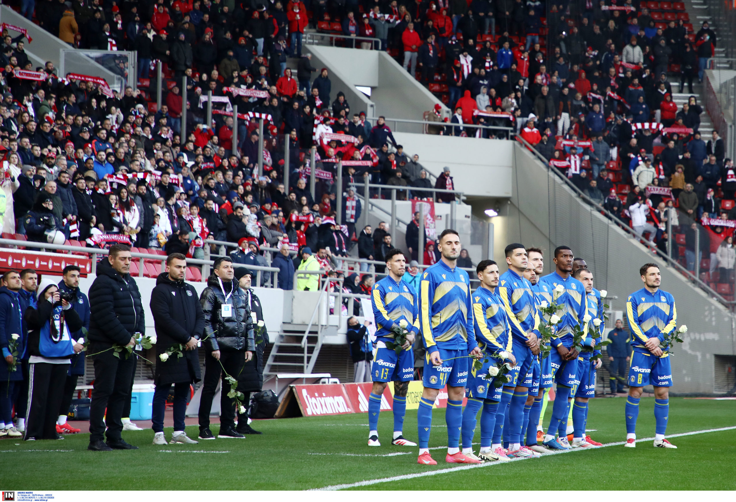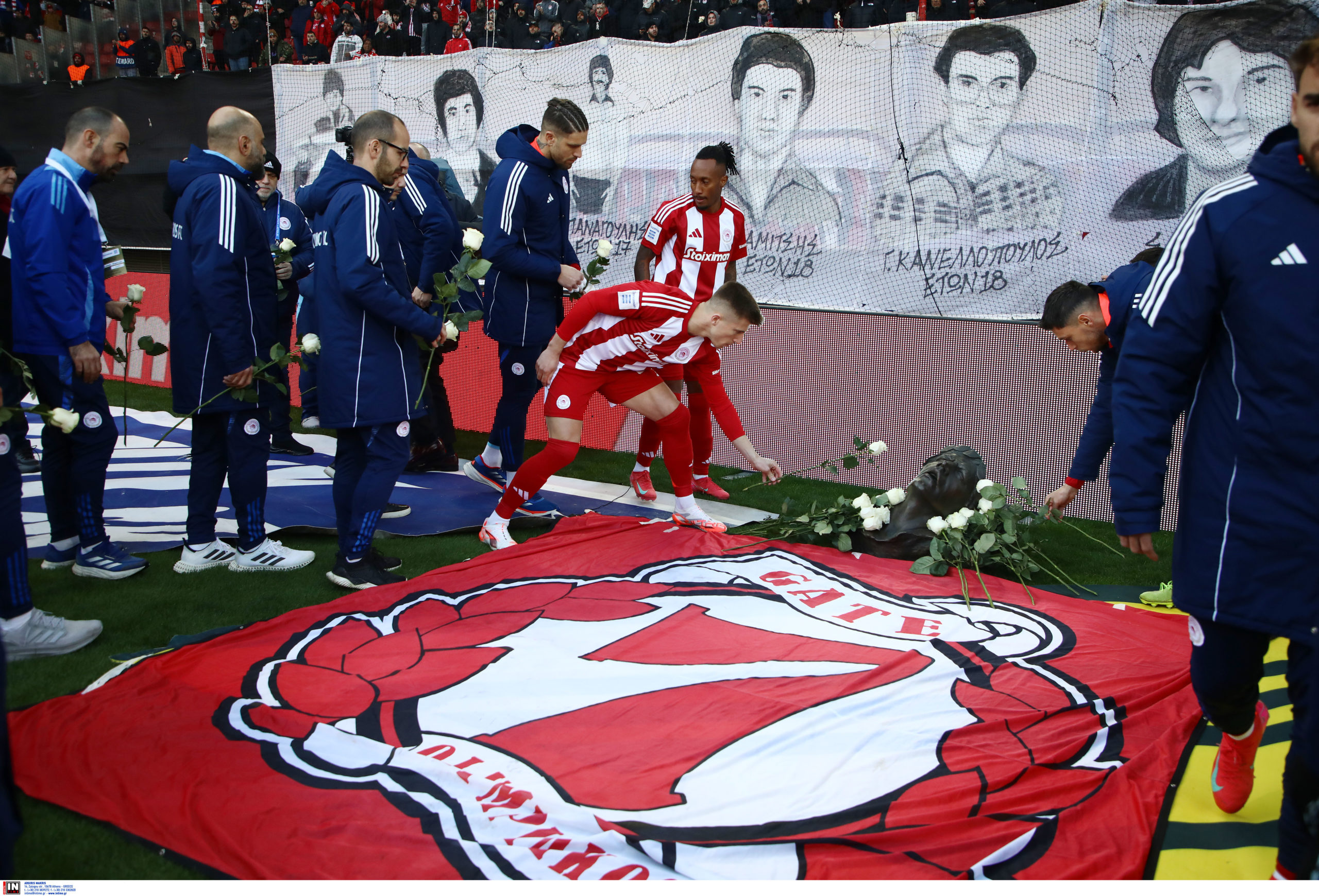 Συγκινητικές στιγμές επικράτησαν σήμερα (Κυριακή, 9/2) στο γήπεδο «Γεώργιος Καραϊσκάκης», πριν από την αναμέτρηση του Ολυμπιακού με τον Αστέρα Τρίπολης, με αφορμή την συμπλήρωση 44 ετών από την τραγωδία της «Θύρας 7».