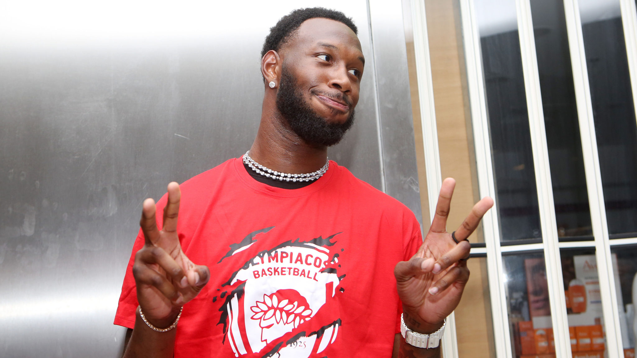 Μιλώντας για το κλίμα που εισέπραξε, σημείωσε: «Αισθάνομαι υπέροχα που φοράω την μπλούζα του Ολυμπιακού. Ήταν ωραία που ήρθα εδώ. Νιώθω την ενέργεια. Τα vibes είναι διαφορετικά εδώ και το λατρεύω».