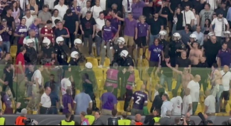 Στο τέλος του πρώτου ημιχρόνου του τελικού του Conference League μεταξύ Ολυμπιακού και Φιορεντίνα, δημιουργήθηκε ένταση στην εξέδρα των φίλων των “βιόλα”.