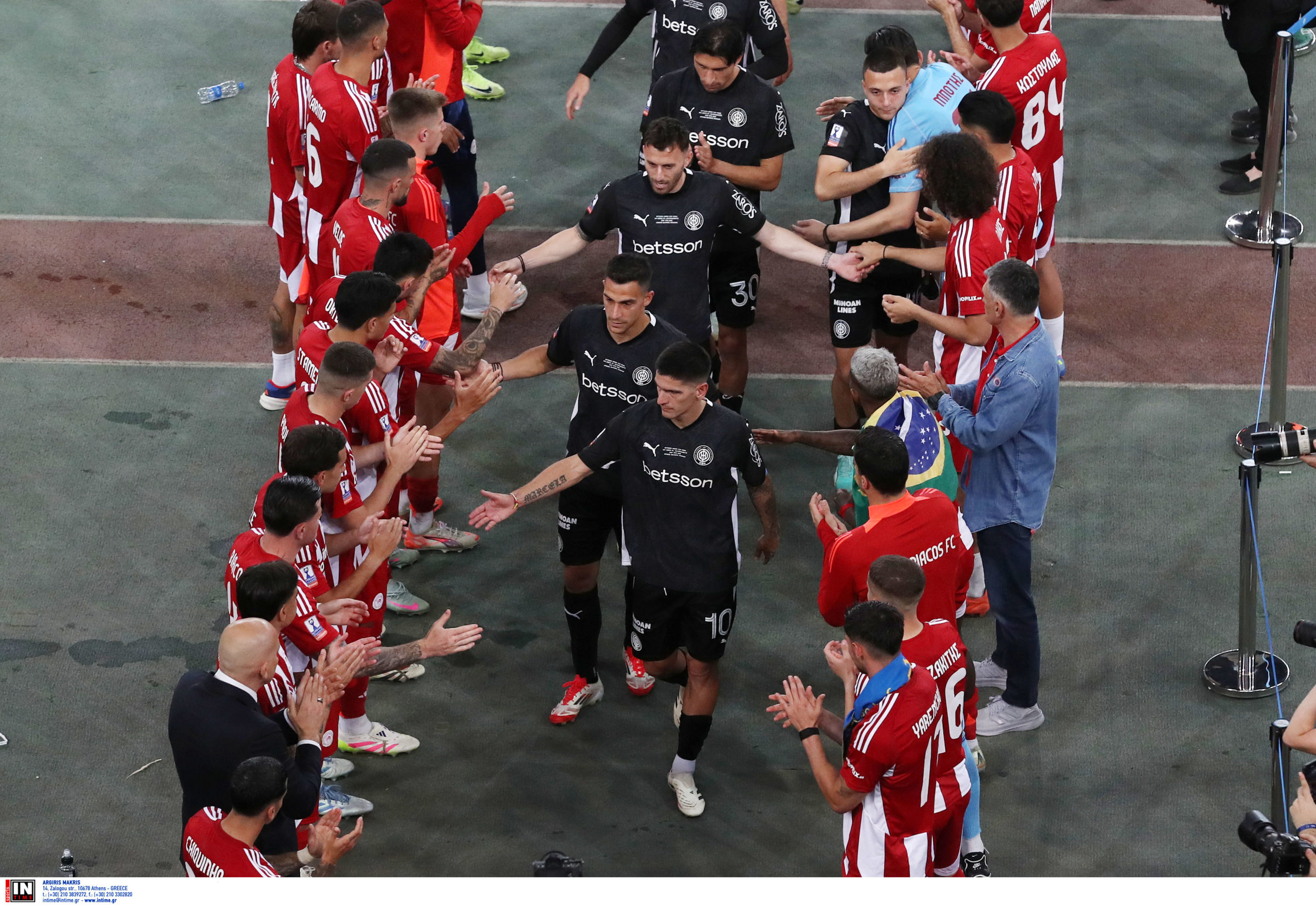 Ακολούθως, οι ερυθρόλευκοι ποδοσφαιριστές παρέλαβαν ένας προς έναν τα μετάλλιά τους, με τον Αγιούμπ Ελ Κααμπί να αναδεικνύεται MVP του τελικού και να παραλαμβάνει το σχετικό βραβείο.