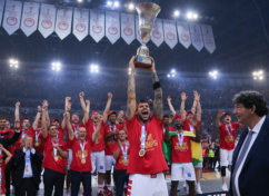 Δείτε την στιγμή που ο αρχηγός των Πειραιωτών σηκώνει το τρόπαιο στον ουρανό του φαληρικού σταδίου.