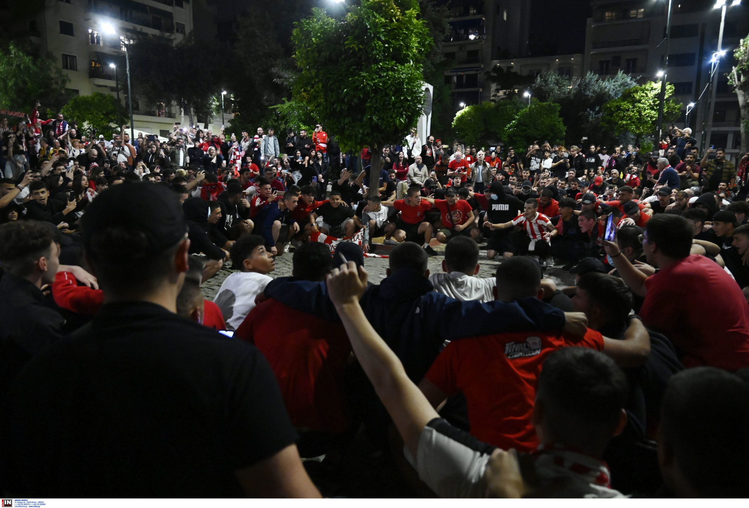 Χαμός επικρατεί στο Πασαλιμάνι και γενικά στον Πειραιά από φίλους του Ολυμπιακού που βγήκαν στους δρόμους για να πανηγυρίσουν την πρόκριση στον τελικό του Conference League.