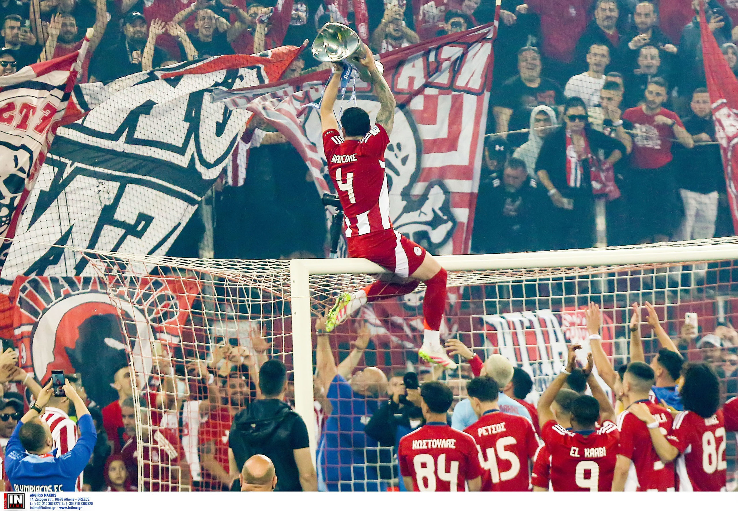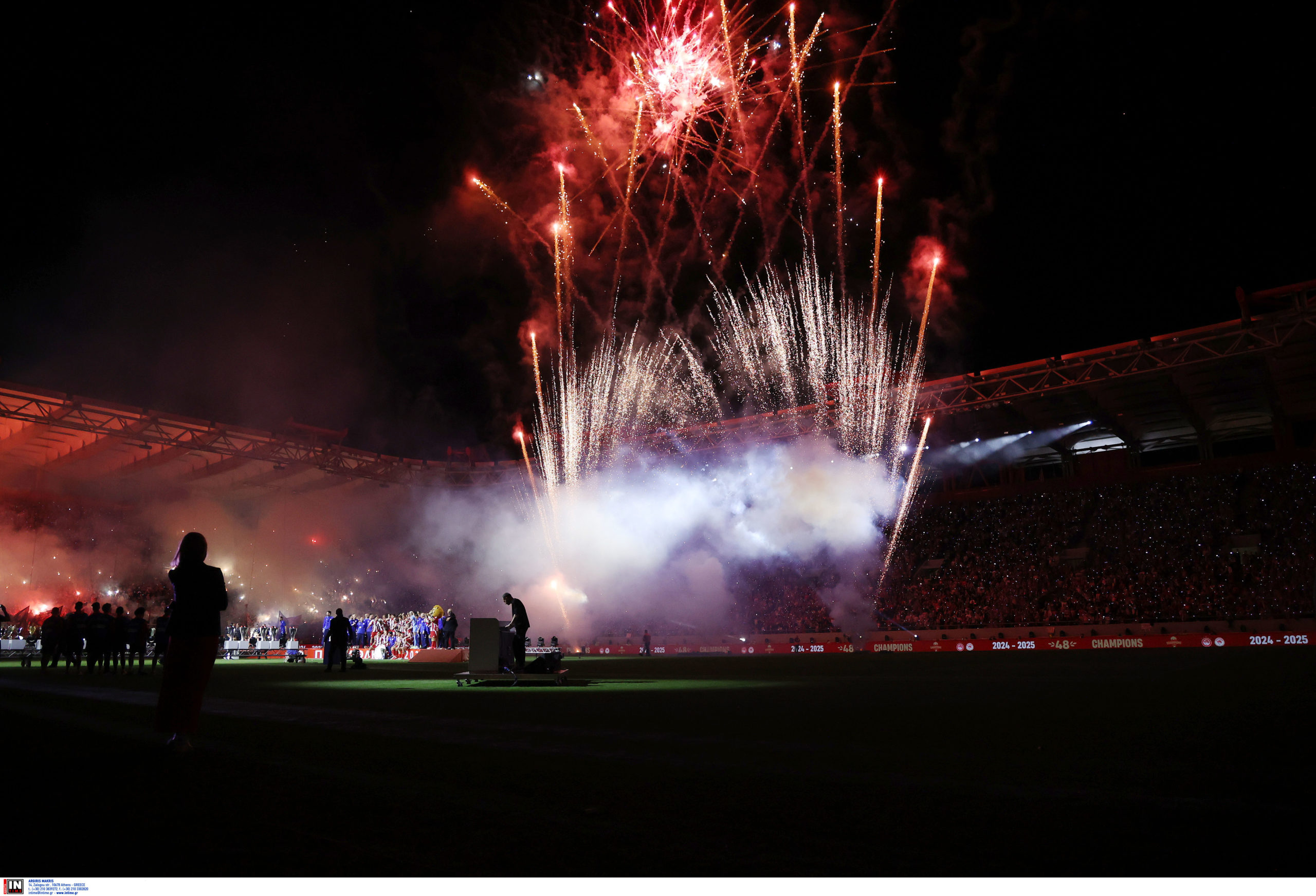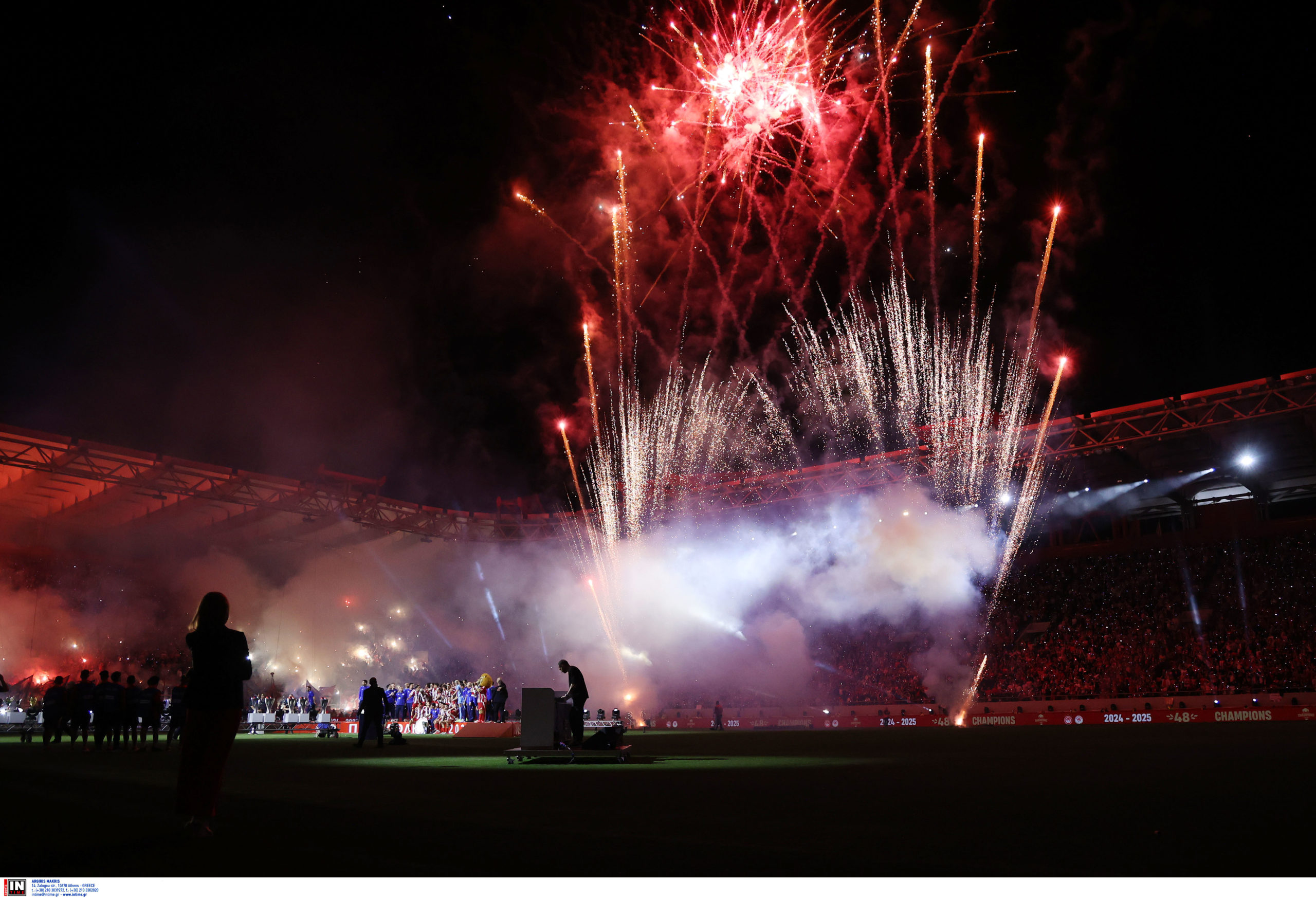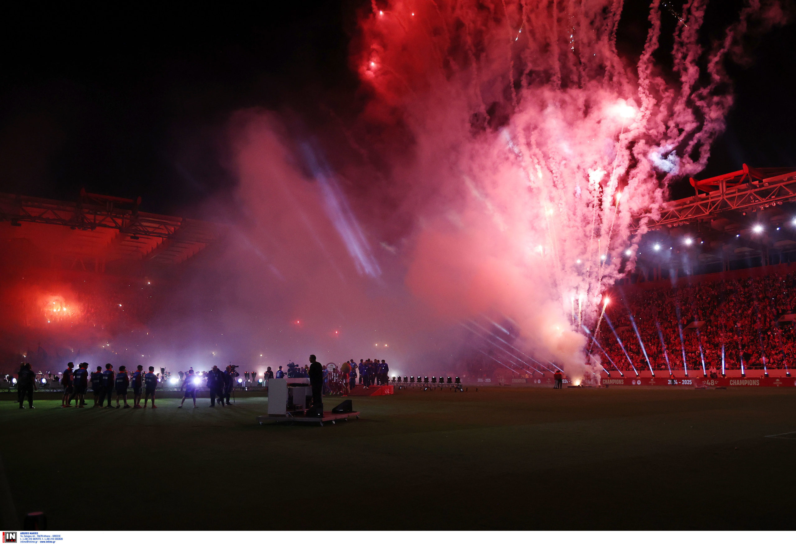 Χιλιάδες φίλαθλοι πλημμύρισαν τις εξέδρες του φαληρικού γηπέδου, μετατρέποντας τη βραδιά σε μια ανεπανάληπτη εμπειρία. Το πάθος και η συγκίνηση ήταν διάχυτα, καθώς οι παίκτες του Ολυμπιακού, με πρωτοστάτη τον ηγέτη της ομάδας Βαγγέλη Μαρινάκη, ανέβηκαν στην ειδικά διαμορφωμένη εξέδρα για να σηκώσουν το τρόπαιο, με φόντο τα πυροτεχνήματα και τη μουσική του “We Are the Champions”.