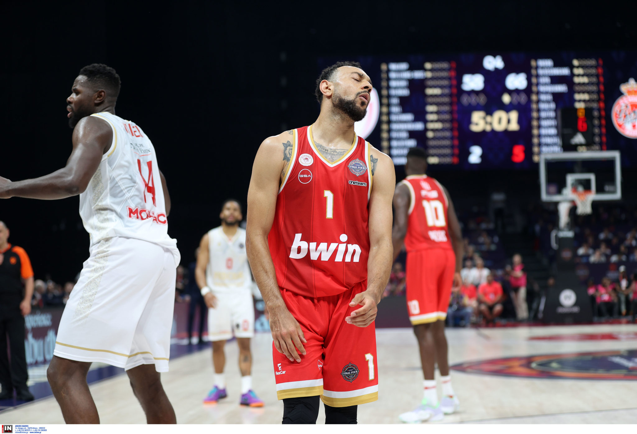 Ο Φουρνιέ αποτέλεσε τη μοναδική επιθετική λύση των Πειραιωτών, μειώνοντας προσωρινά σε 51-55 (29′), διατηρώντας ελπίδες για ανατροπή. Ωστόσο, οι υπόλοιποι παίκτες δεν κατάφεραν να βοηθήσουν, με τη Μονακό να επιστρέφει σε διψήφια διαφορά (51-62, 31′). Ένα σύντομο ξέσπασμα από Γουίλιαμς-Γκος και Φουρνιέ μείωσε σε 56-64 (34′), αλλά ο Τζέιμς ανέλαβε δράση με εντυπωσιακές ασίστ και «καθάρισε» το ματς (58-70, 36′).