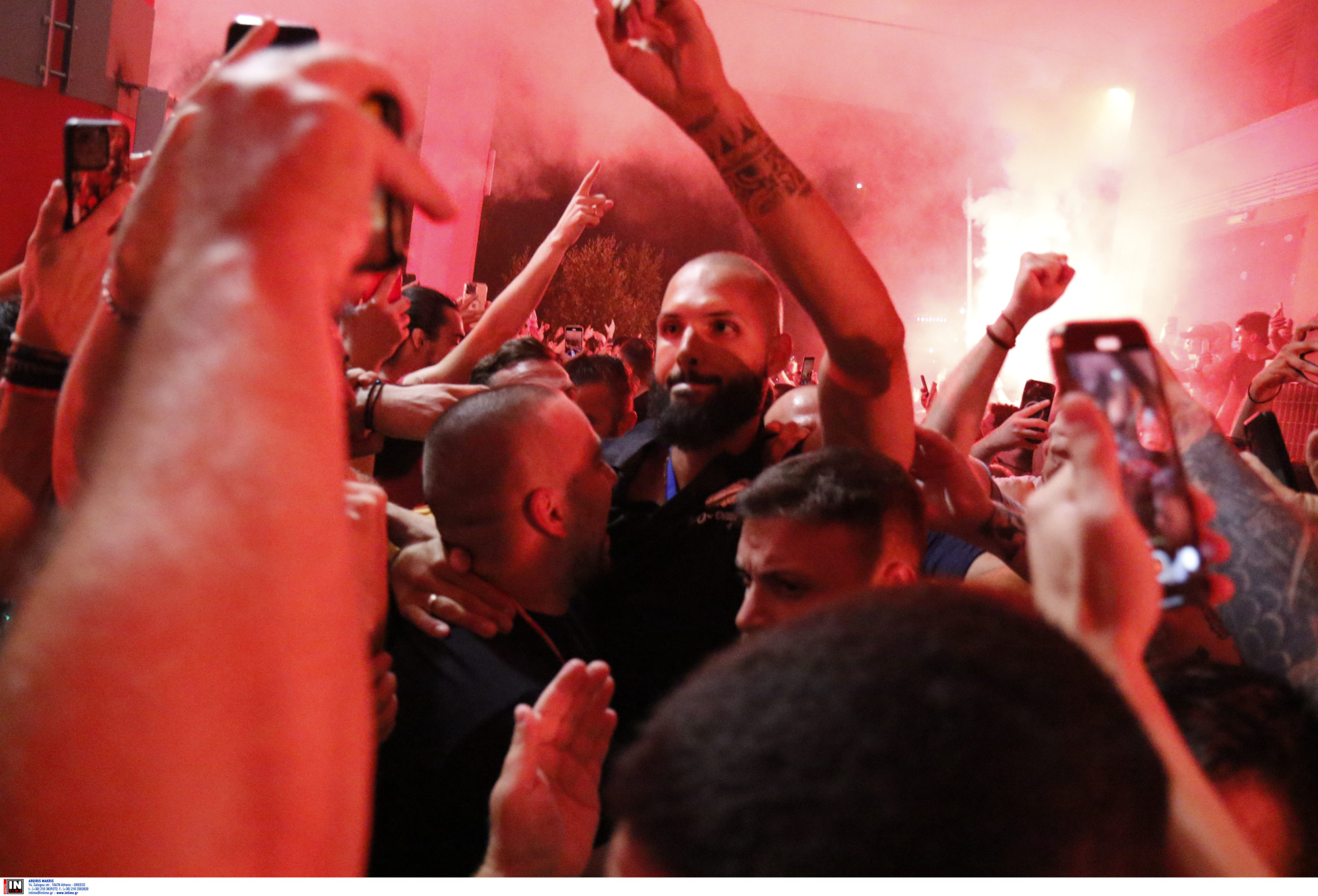 Οι οπαδοί άναψαν καπνογόνα και φώναξαν συνθήματα υπέρ του Γιώργου Μπαρτζώκα και του Εβάν Φουρνιέ, οι οποίοι είχαν ξεχωριστή παρουσία στην αναμέτρηση. Τα ονόματά τους κυριάρχησαν στα συνθήματα των φίλων του Ολυμπιακού, με το κοινό να τους αποθεώνει για την καθοριστική συνεισφορά τους στο σπουδαίο αποτέλεσμα.