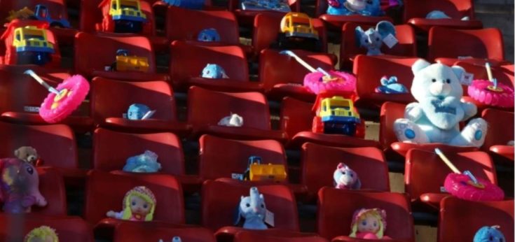 Αρκουδάκια και παιχνίδια τοποθετήθηκαν σε κερκίδα του «Γ. Καραϊσκάκης» στο πλαίσιο του φιλικού Ολυμπιακός – Σαχτάρ, μια συμβολική κίνηση των «ερυθρόλευκων» για τα παιδιά στην Ουκρανία που χάθηκαν.