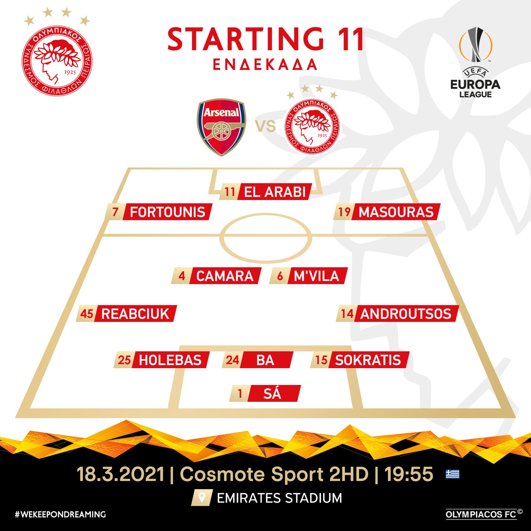 Αναλυτικά η ενδεκάδα: Σα, Μπα, Παπασταθόπουλος, Χολέμπας, Ανδρούτσος, Ρέαμπτσιουκ, Καμαρά, Εμβιλά, Φορτούνης, Μασούρας, Ελ Αραμπί