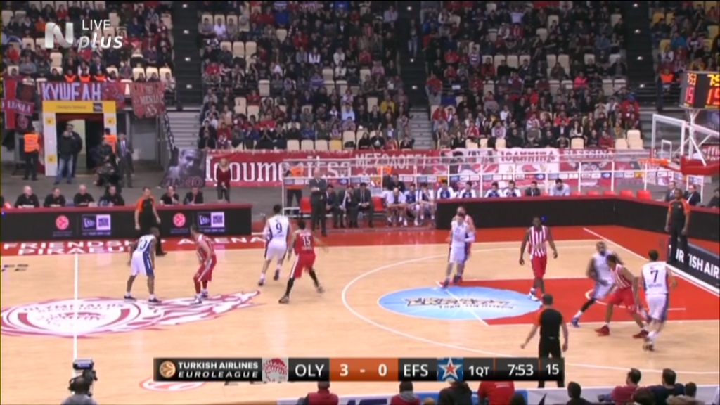 Με τρίποντο του Πρίντεζη στην τελευταία επίθεση, ο Ολυμπιακός προηγείται με 17-16 της Εφές Αναντολού στο πρώτο δεκάλεπτο. Πρώτος σκόρερ της ελληνικής ομάδας ο Μάντζαρης με 5 πόντους.