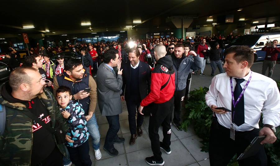 Στο αεροδρόμιο βρέθηκε και ο πρόεδρος της ΠΑΕ και Δήμαρχος Πειραιά, Γιάννης Μώραλης.