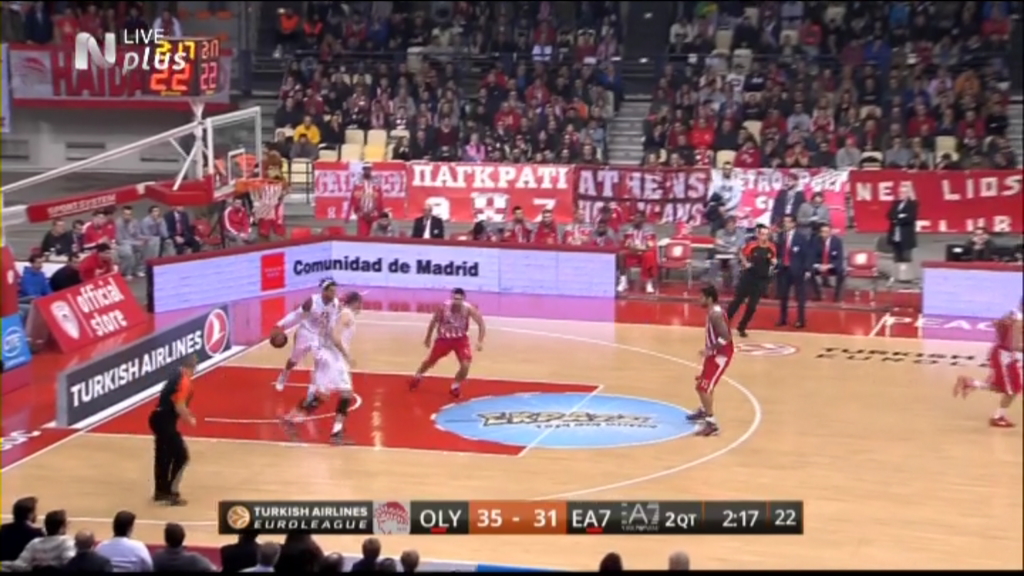 Ο Ολυμπιακός βρήκε λύσεις στην επίθεση στο δεύτερο δεκάλεπτο, όπου πέτυχε 26 πόντους και έτσι προηγείται με 39-35 της Αρμάνι Μιλάνο στο ημίχρονο. Πρώτος σκόρερ της ελληνικής ομάδας ο Σπανούλης με 7 πόντους.