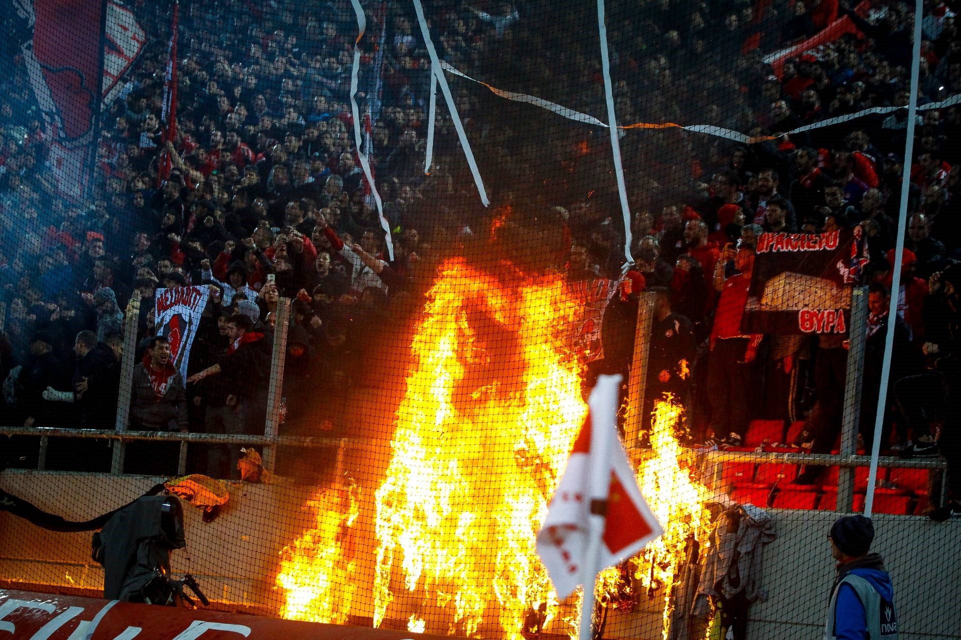 Οι οπαδοί του Ολυμπιακού έβαλαν φωτιά σε πανό της ΑΕΚ και αυτό ήταν η αιτία να καθυστερήσει η έναρξη του Β’ ημιχρόνου.