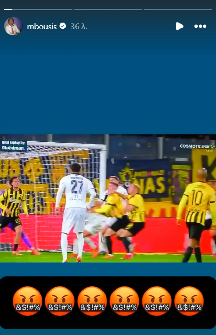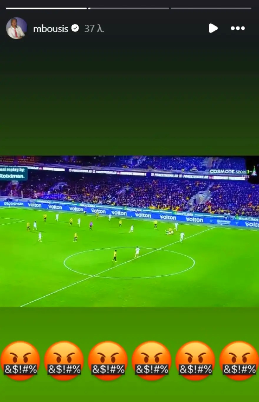 Ο ιδιοκτήτης του ΟΦΗ, Μιχάλης Μπούσης, εξέφρασε δημόσια την ενόχλησή του μέσω Instagram, ανεβάζοντας δύο stories με στιγμιότυπα των φάσεων και οργισμένα emoji.