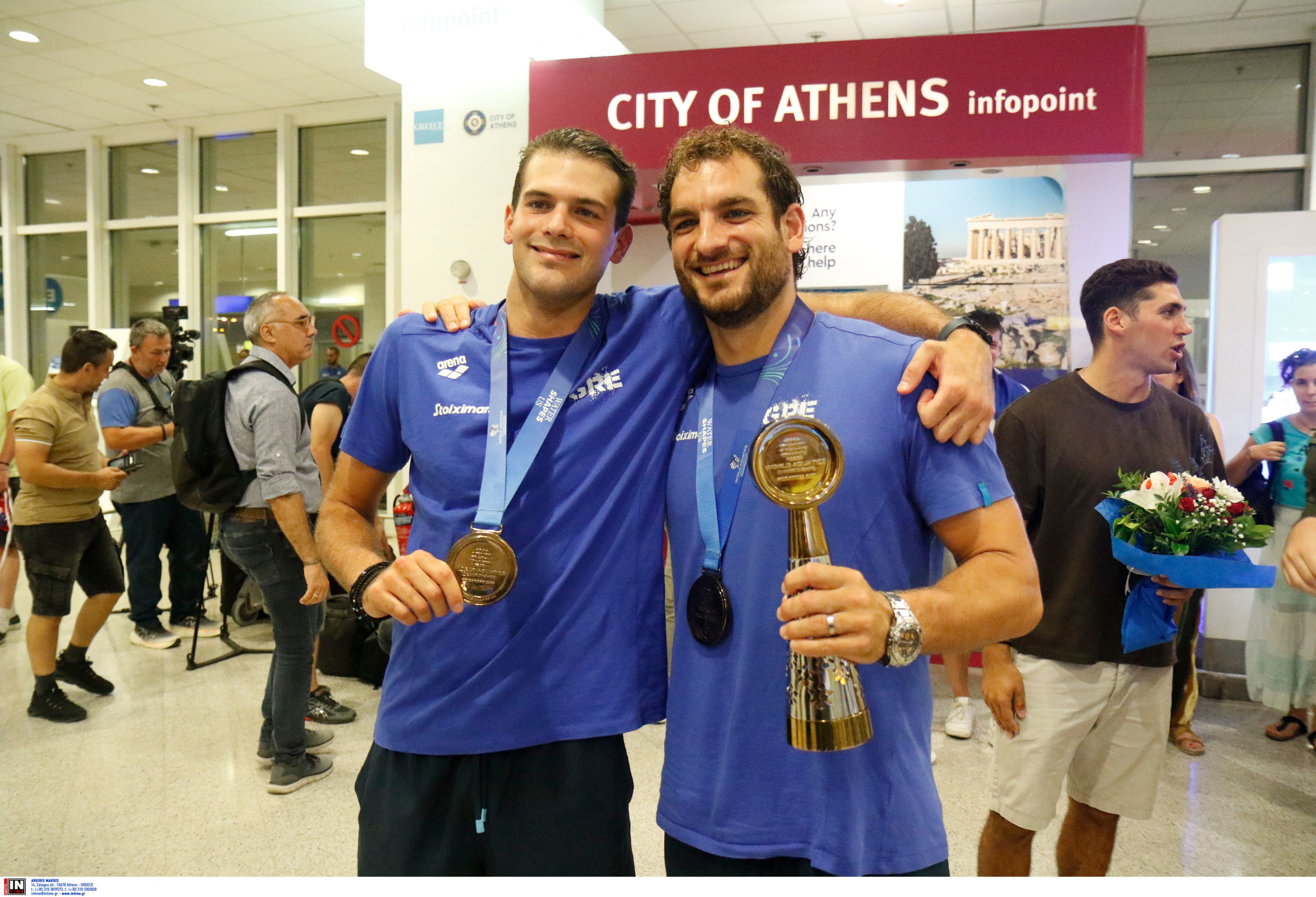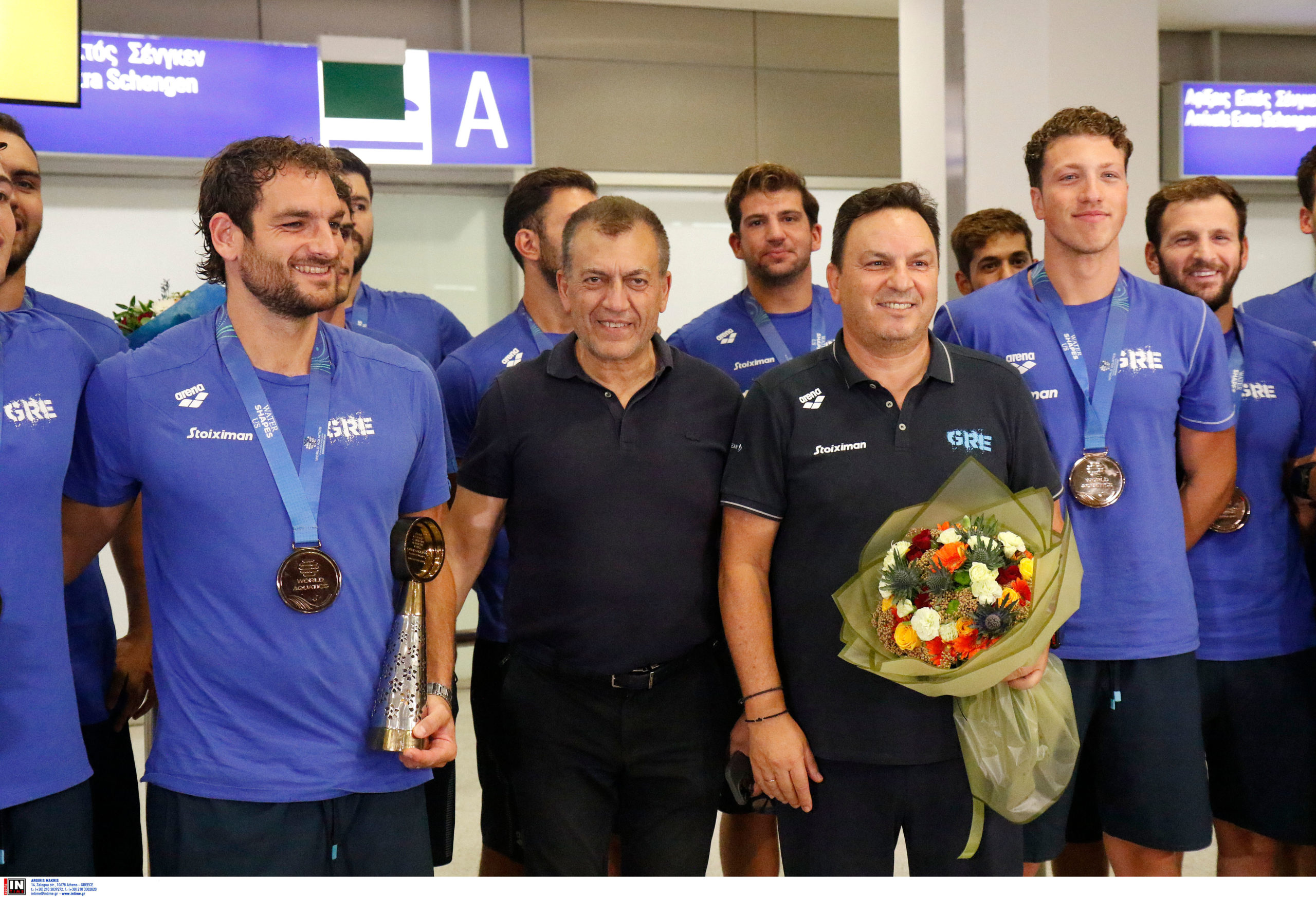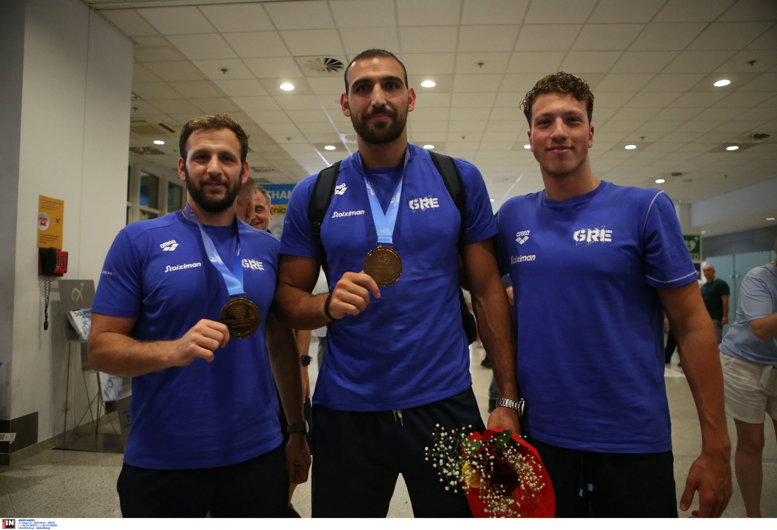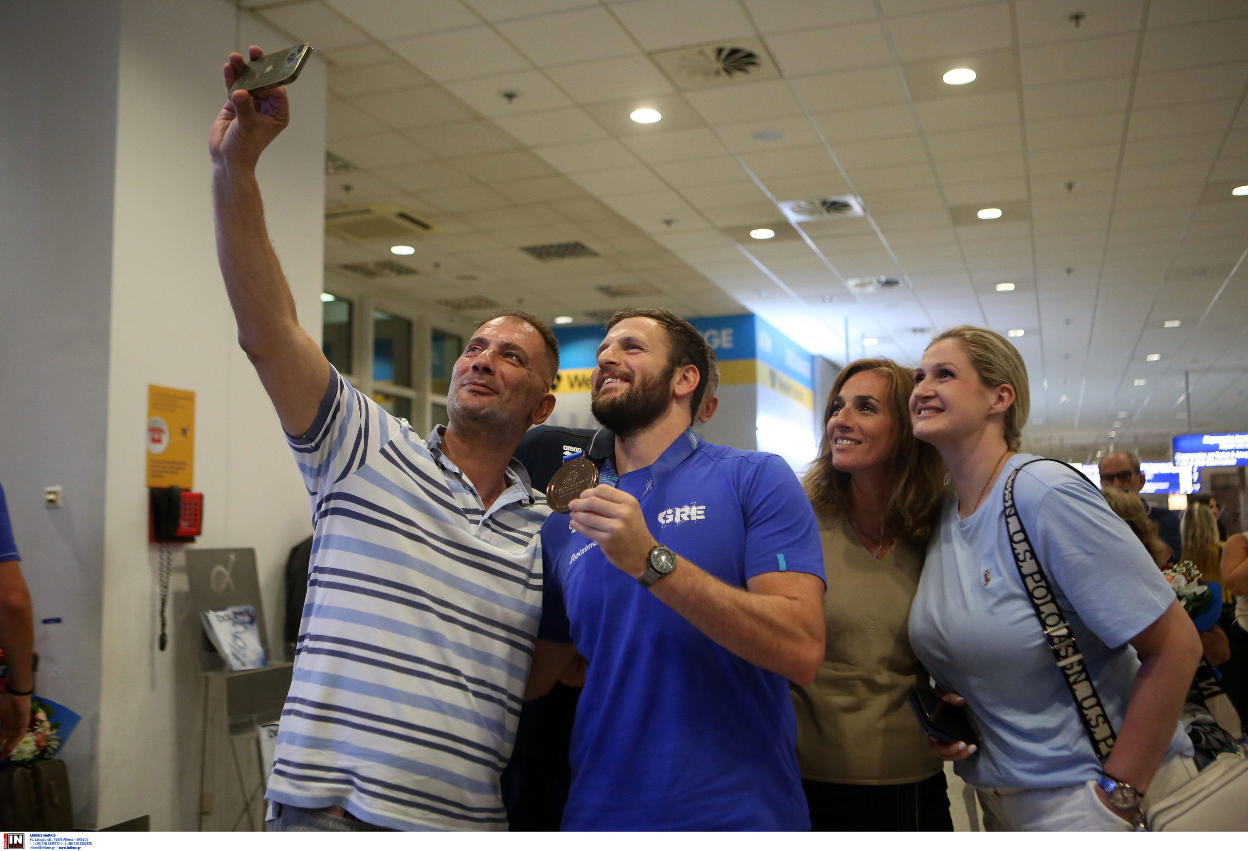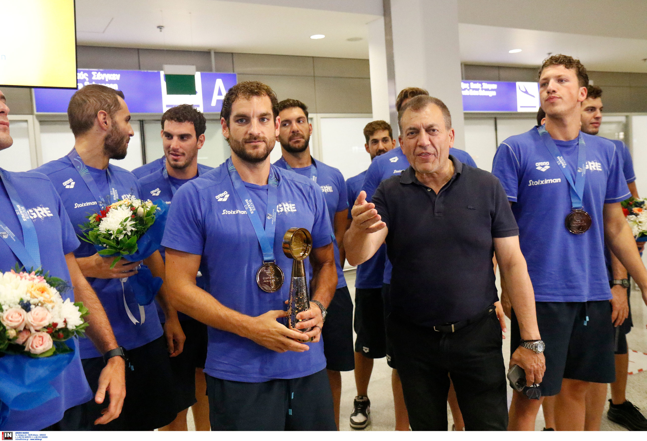 Γεμάτη χαμόγελα και περηφάνια, η Εθνική ομάδα πόλο των ανδρών επέστρεψε το βράδυ της Παρασκευής (25/7) από τη Σιγκαπούρη, έχοντας στις αποσκευές της το χάλκινο μετάλλιο από το Παγκόσμιο Πρωτάθλημα. Λίγες ώρες μετά την επιστροφή της γυναικείας ομάδας, σειρά πήραν οι άνδρες του Θοδωρή Βλάχου, οι οποίοι γνώρισαν αποθεωτική υποδοχή στο αεροδρόμιο «Ελευθέριος Βενιζέλος».