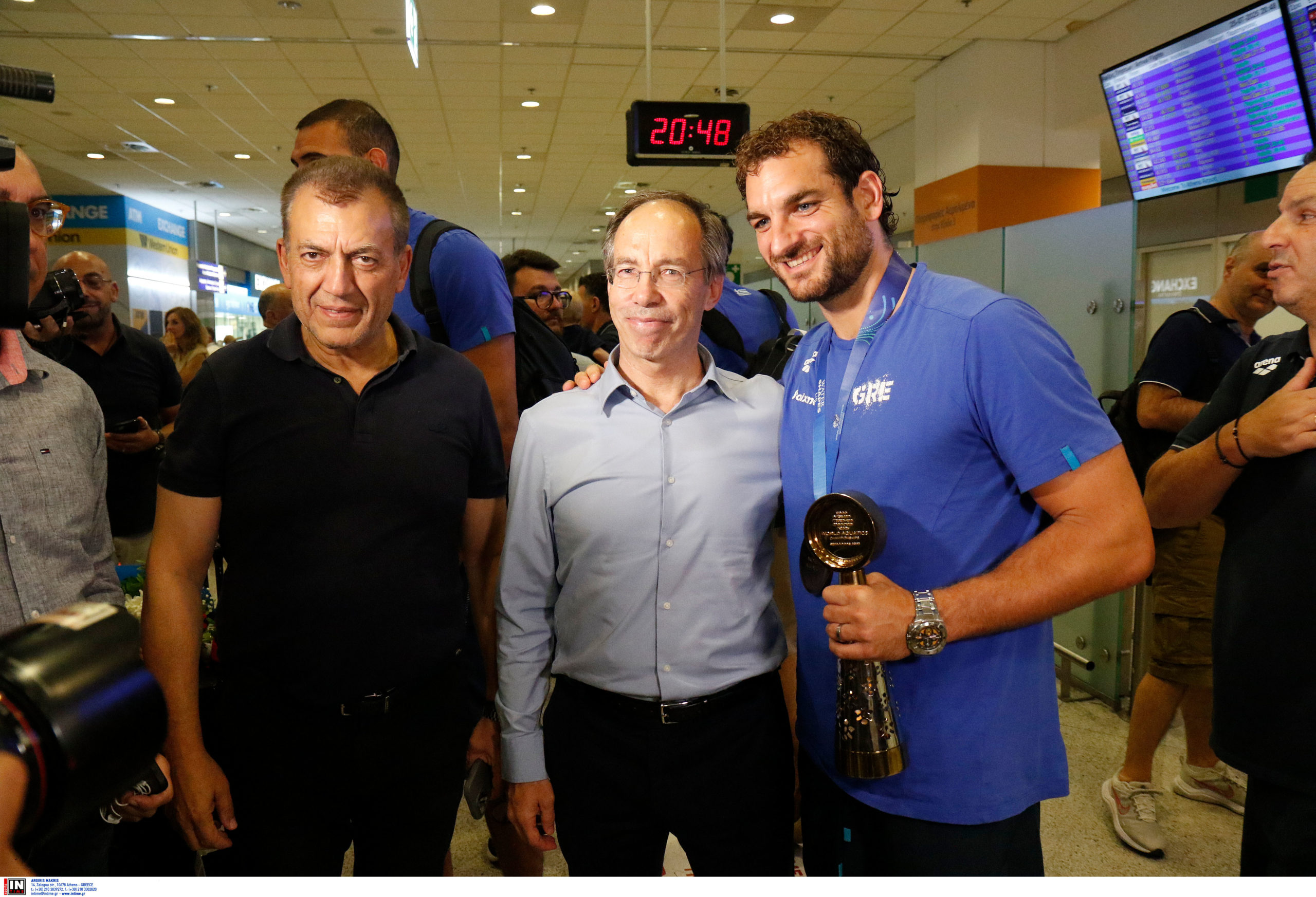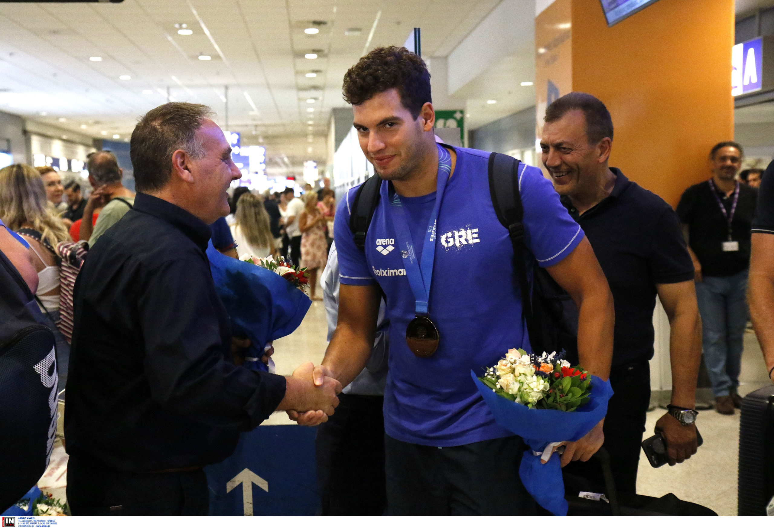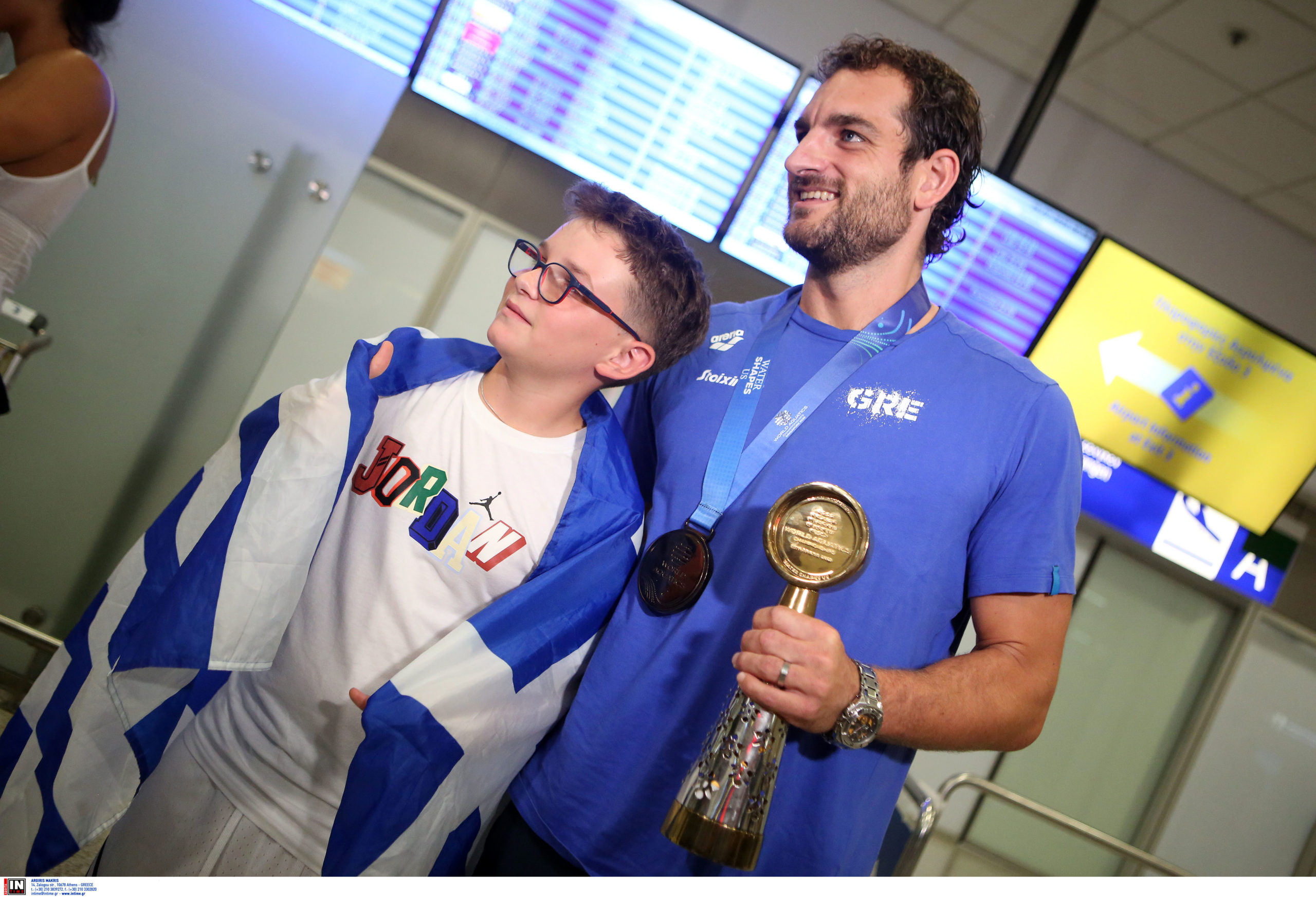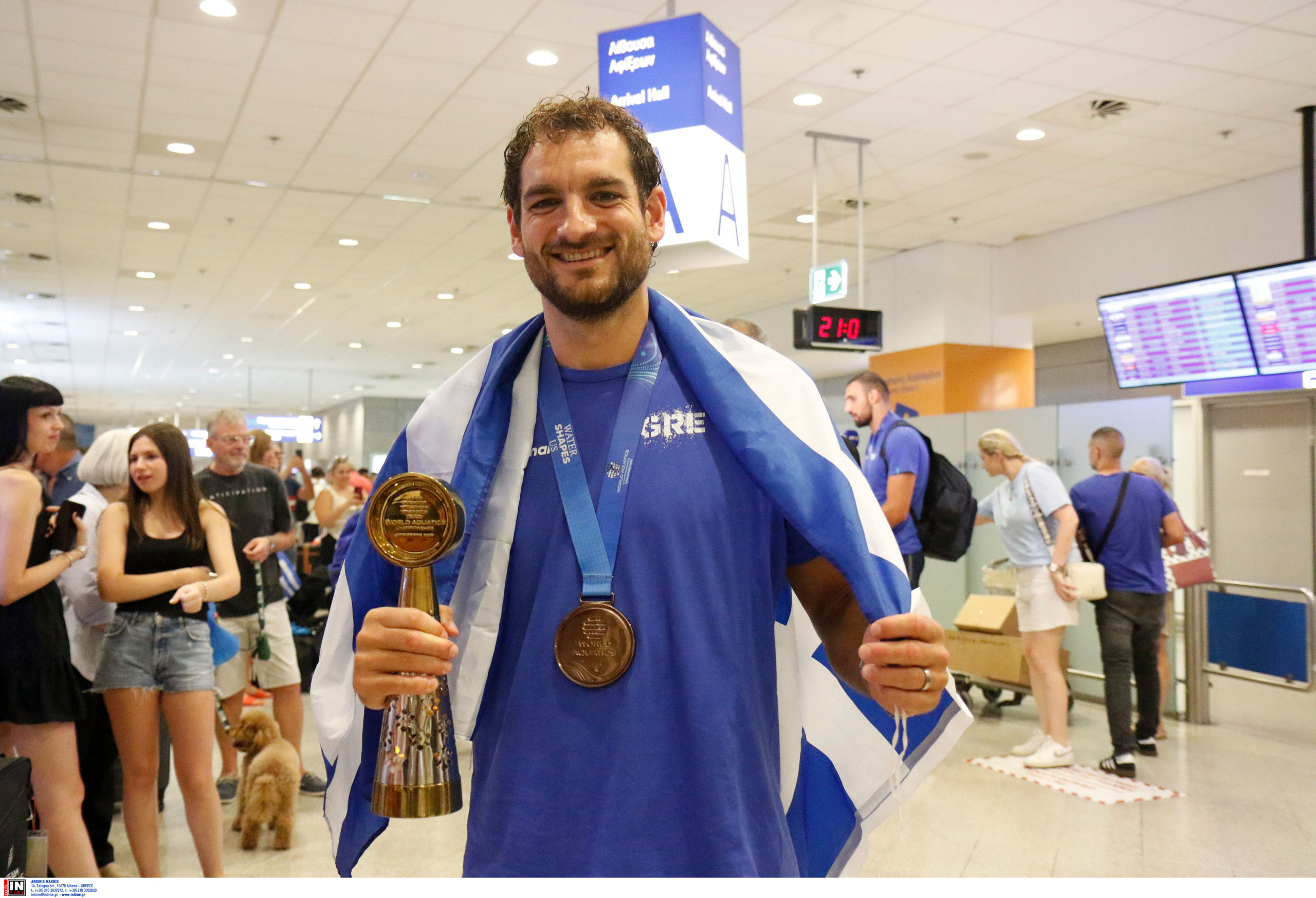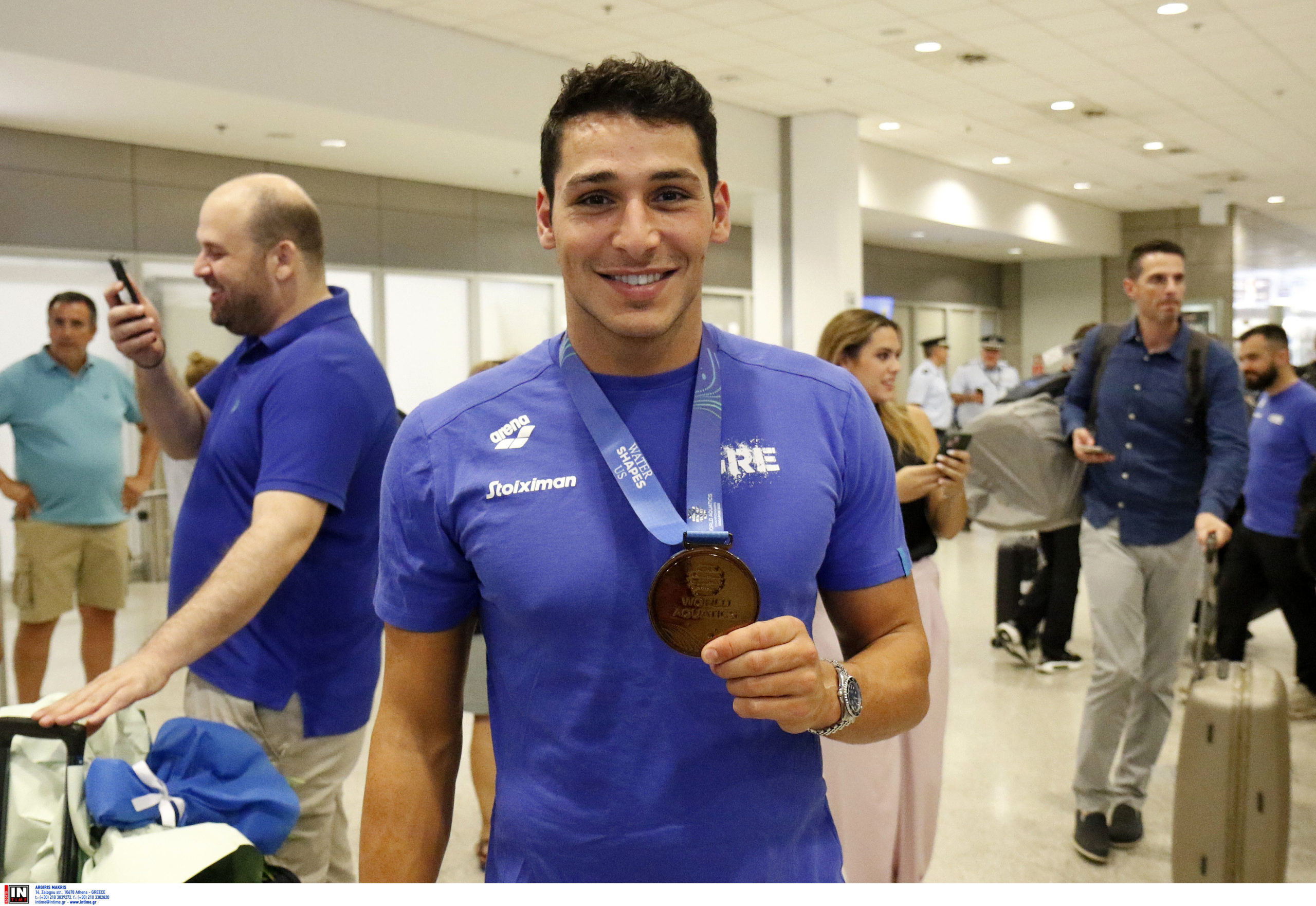 Γεμάτη χαμόγελα και περηφάνια, η Εθνική ομάδα πόλο των ανδρών επέστρεψε το βράδυ της Παρασκευής (25/7) από τη Σιγκαπούρη, έχοντας στις αποσκευές της το χάλκινο μετάλλιο από το Παγκόσμιο Πρωτάθλημα. Λίγες ώρες μετά την επιστροφή της γυναικείας ομάδας, σειρά πήραν οι άνδρες του Θοδωρή Βλάχου, οι οποίοι γνώρισαν αποθεωτική υποδοχή στο αεροδρόμιο «Ελευθέριος Βενιζέλος».