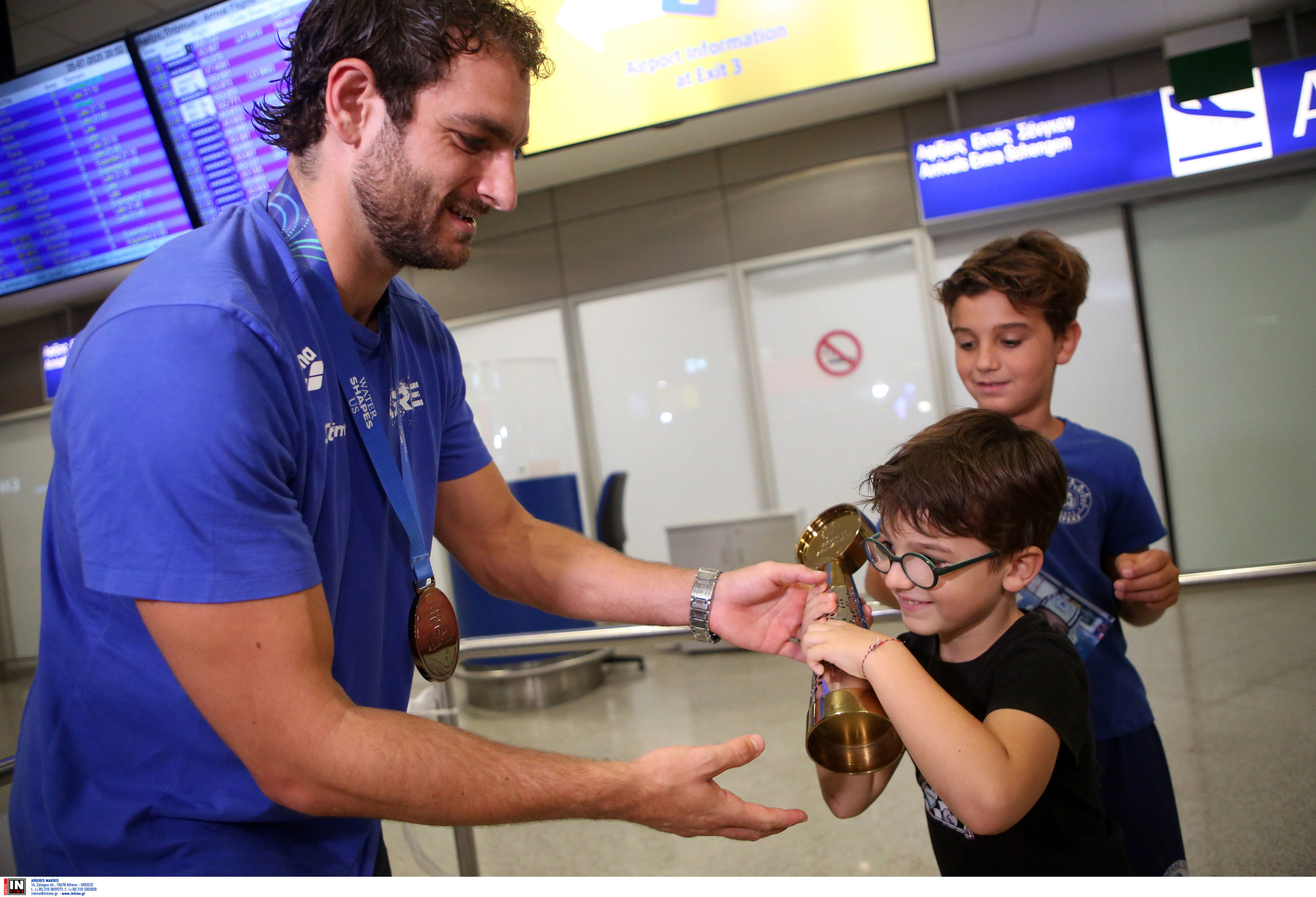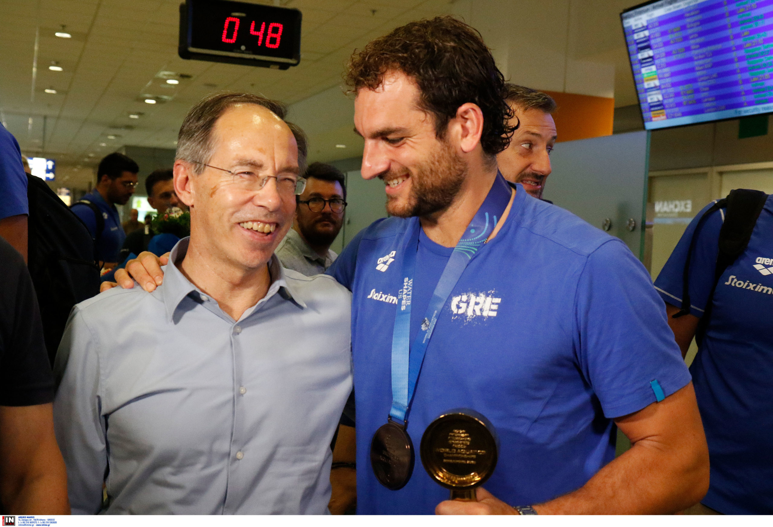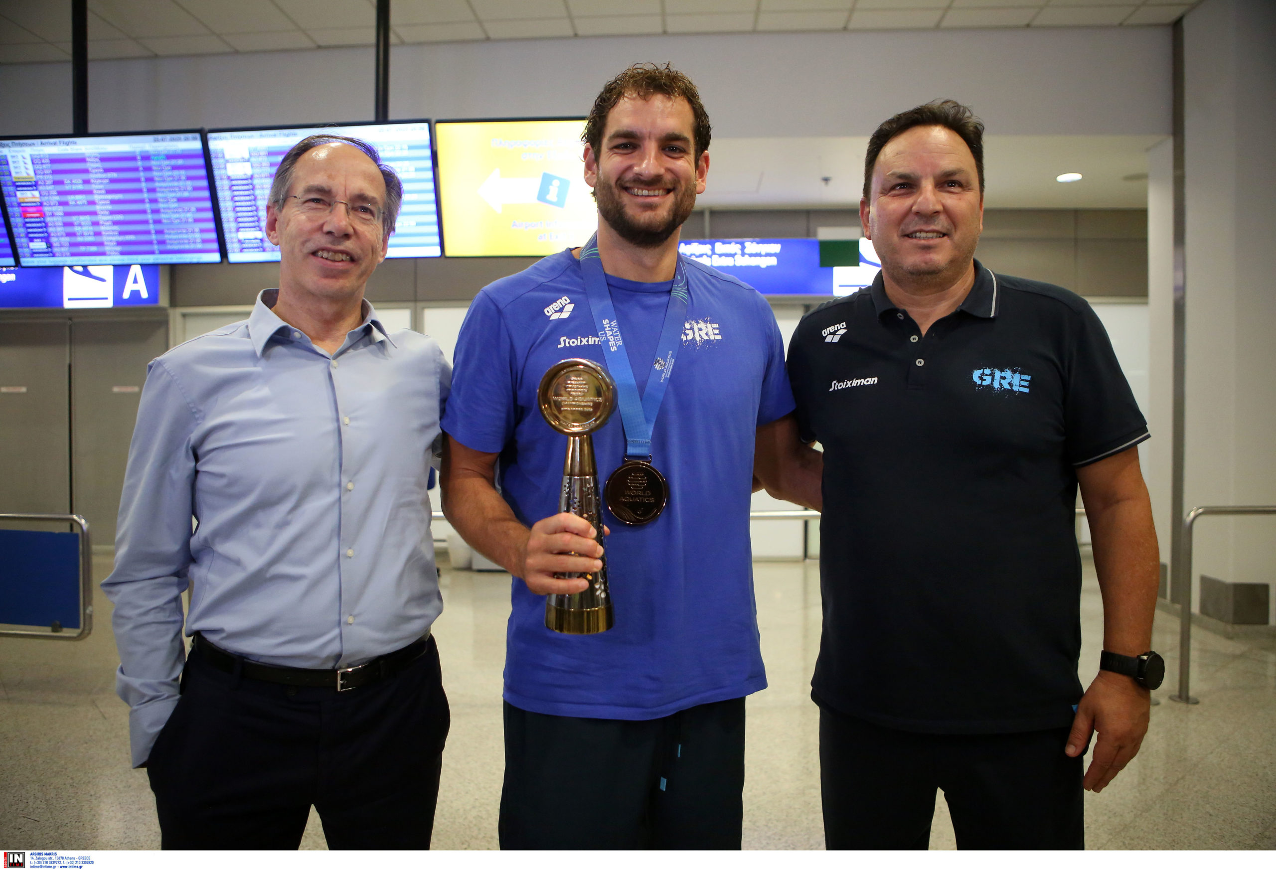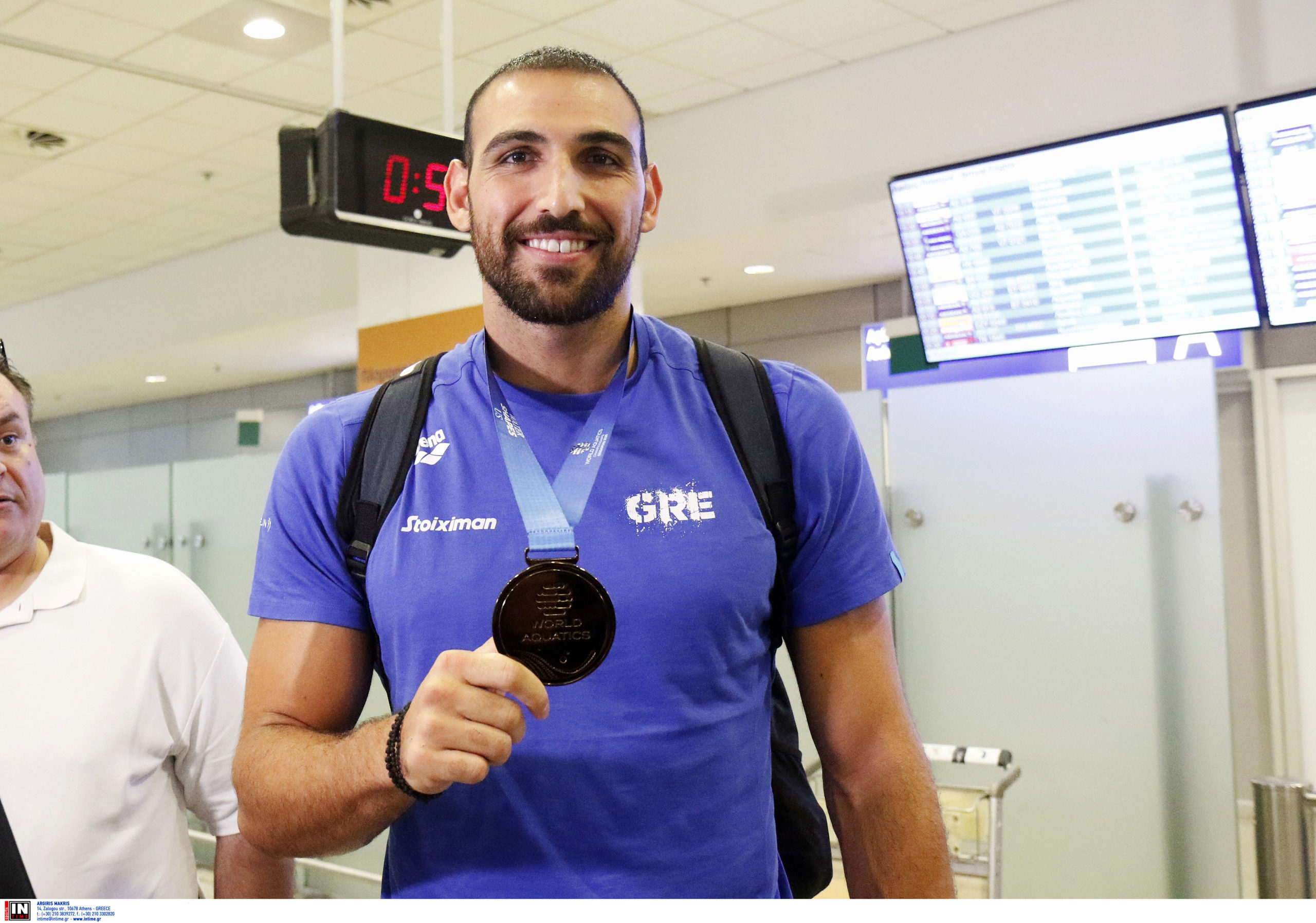 Γεμάτη χαμόγελα και περηφάνια, η Εθνική ομάδα πόλο των ανδρών επέστρεψε το βράδυ της Παρασκευής (25/7) από τη Σιγκαπούρη, έχοντας στις αποσκευές της το χάλκινο μετάλλιο από το Παγκόσμιο Πρωτάθλημα. Λίγες ώρες μετά την επιστροφή της γυναικείας ομάδας, σειρά πήραν οι άνδρες του Θοδωρή Βλάχου, οι οποίοι γνώρισαν αποθεωτική υποδοχή στο αεροδρόμιο «Ελευθέριος Βενιζέλος».