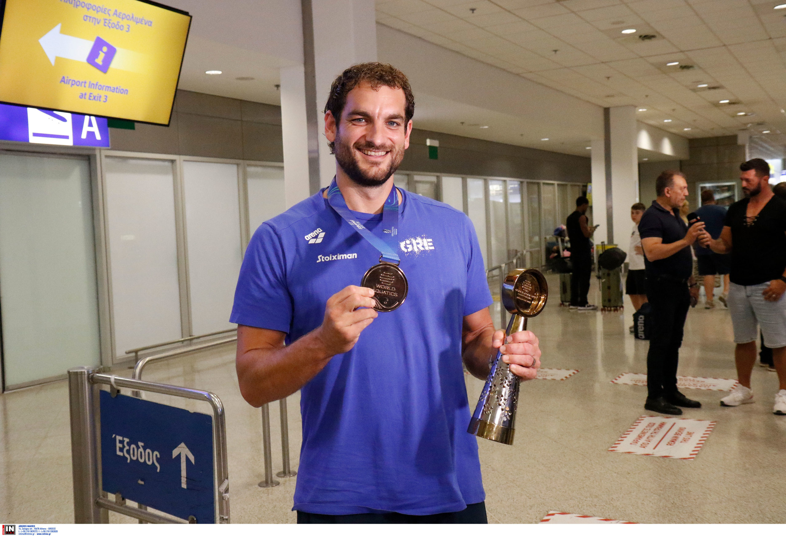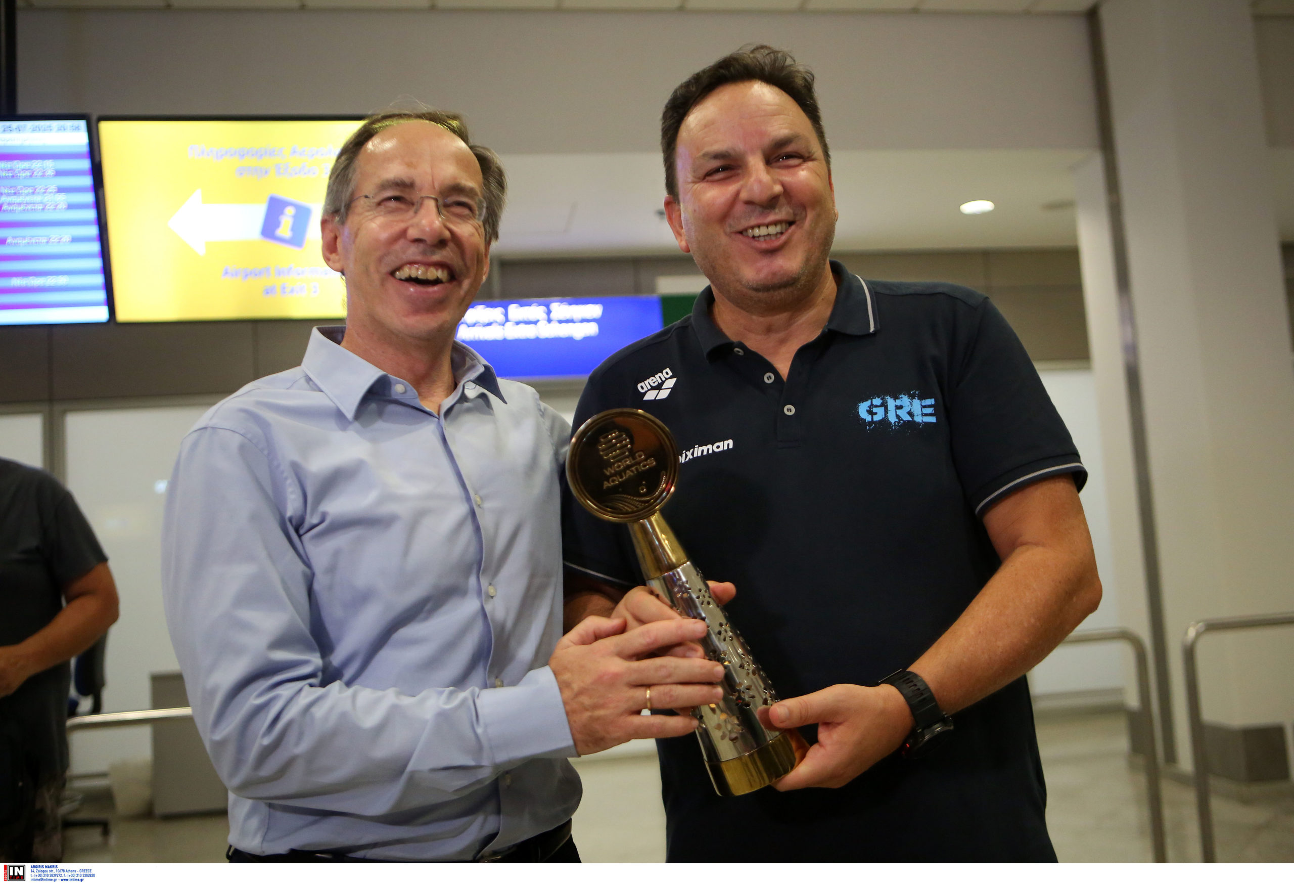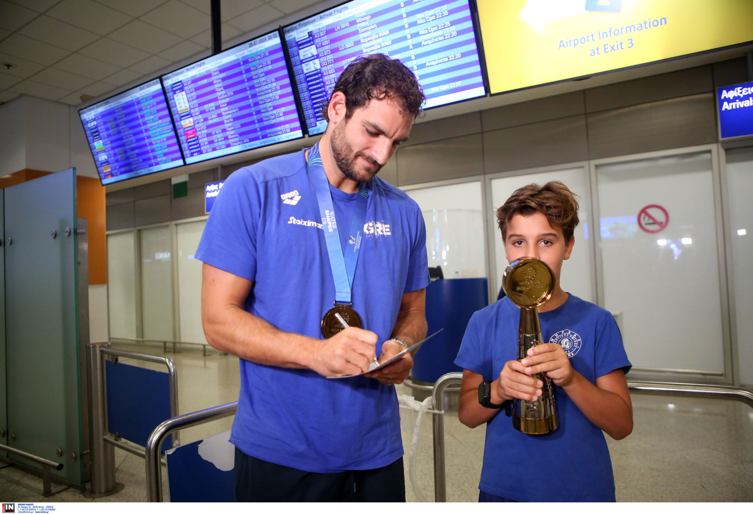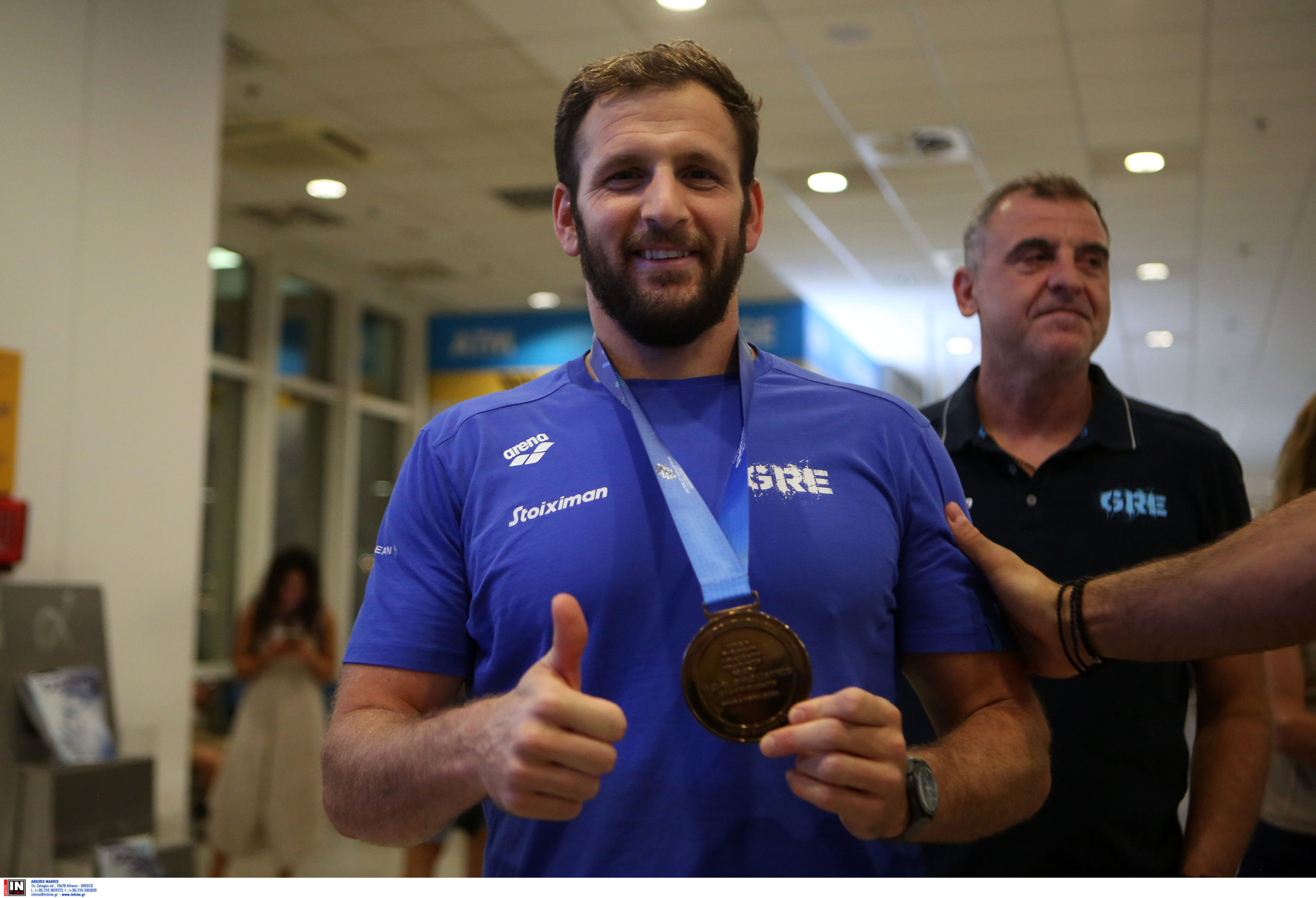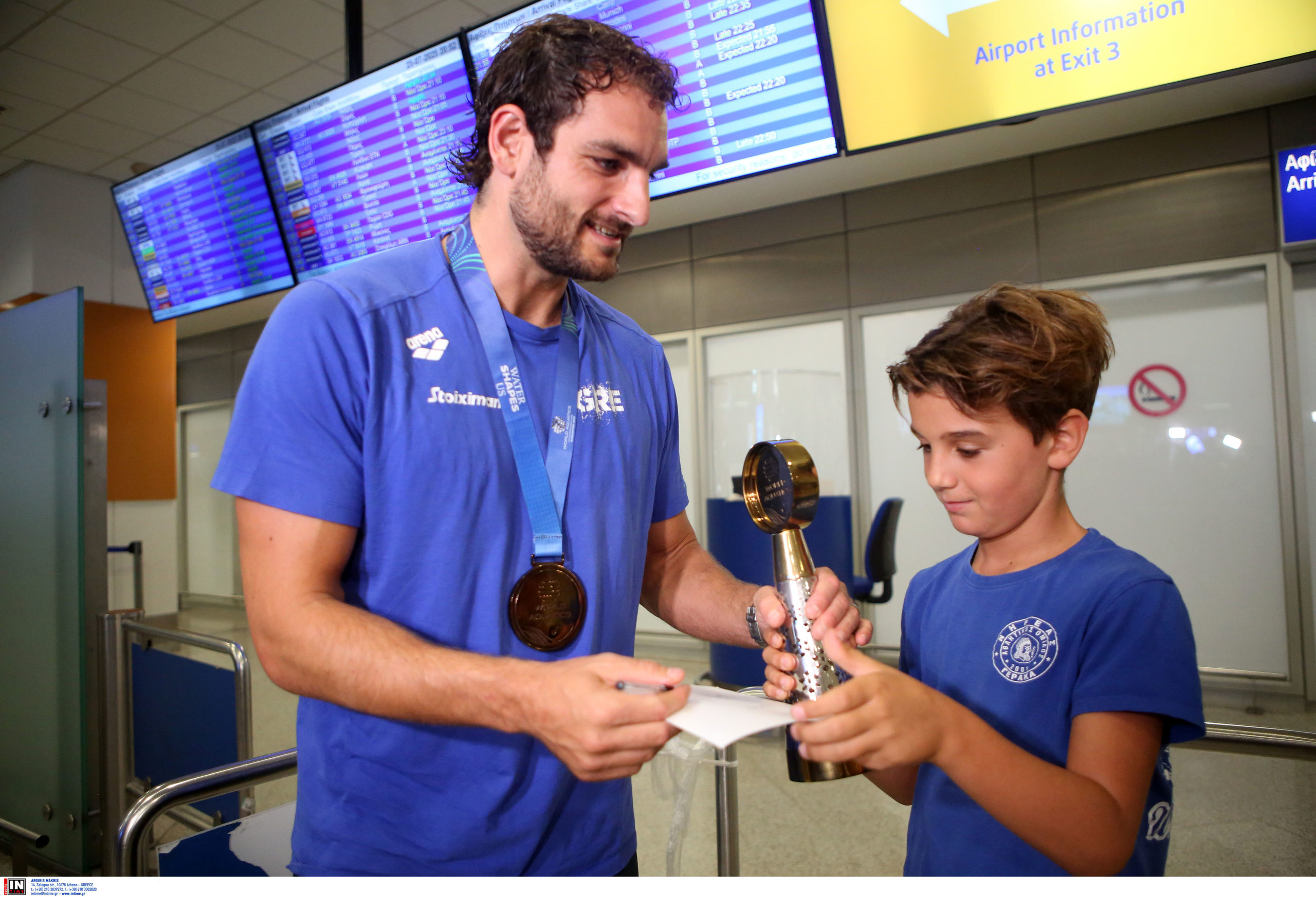 Γεμάτη χαμόγελα και περηφάνια, η Εθνική ομάδα πόλο των ανδρών επέστρεψε το βράδυ της Παρασκευής (25/7) από τη Σιγκαπούρη, έχοντας στις αποσκευές της το χάλκινο μετάλλιο από το Παγκόσμιο Πρωτάθλημα. Λίγες ώρες μετά την επιστροφή της γυναικείας ομάδας, σειρά πήραν οι άνδρες του Θοδωρή Βλάχου, οι οποίοι γνώρισαν αποθεωτική υποδοχή στο αεροδρόμιο «Ελευθέριος Βενιζέλος».