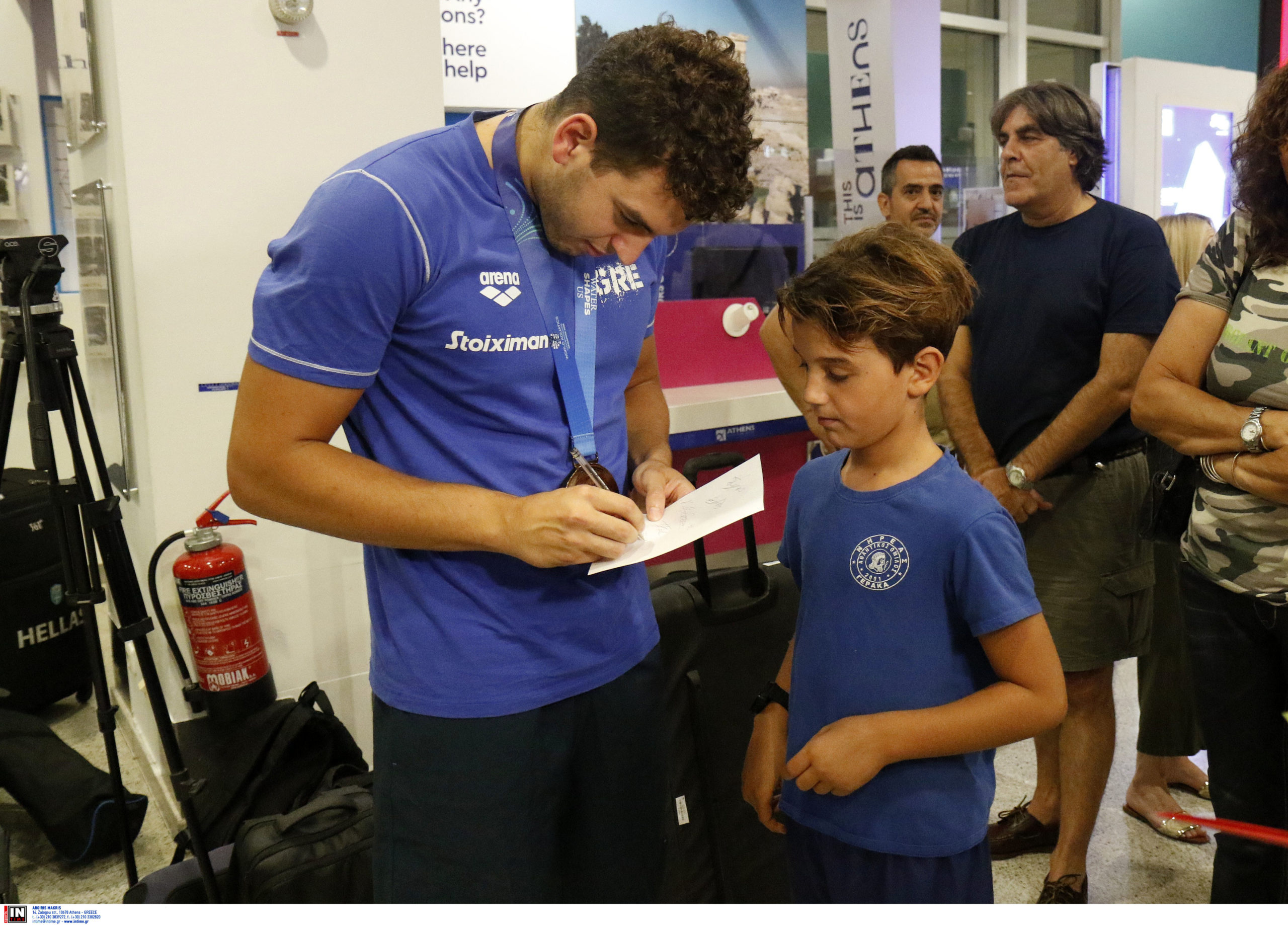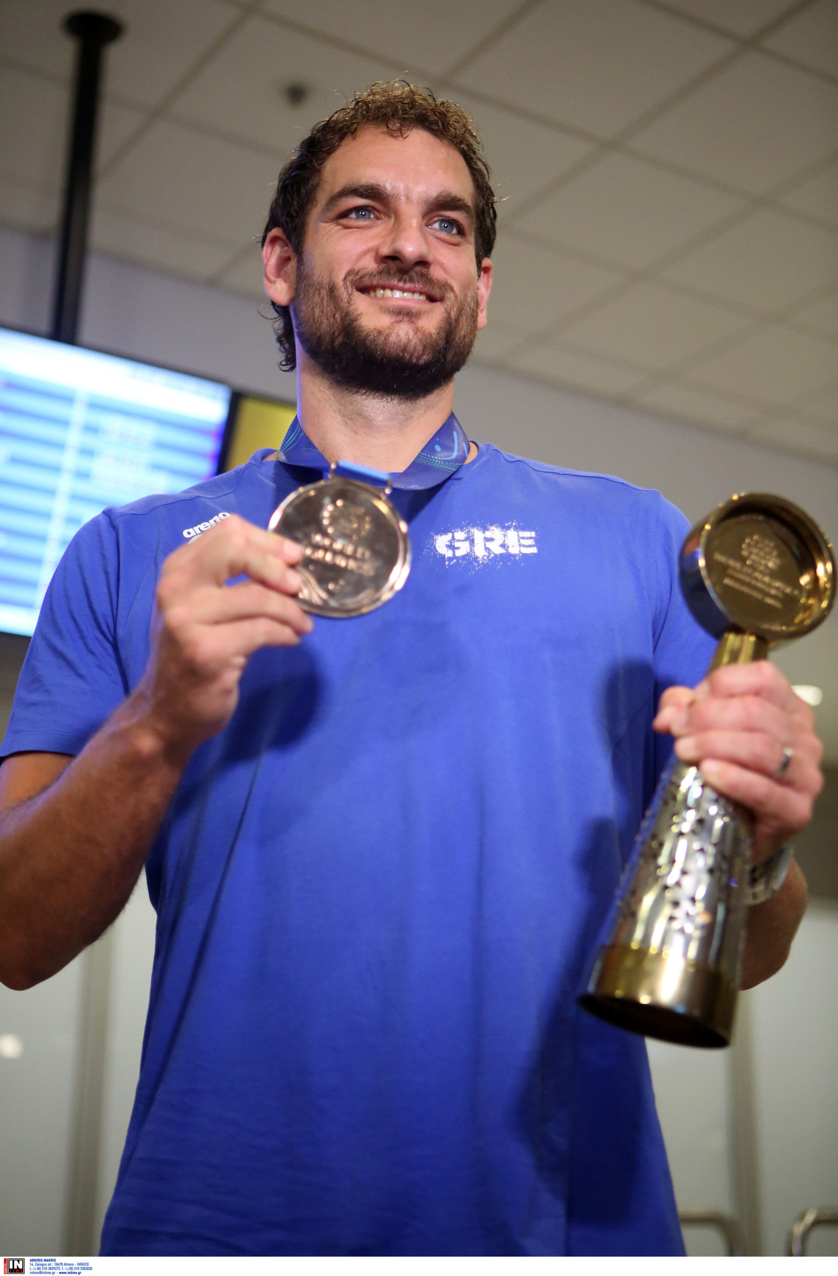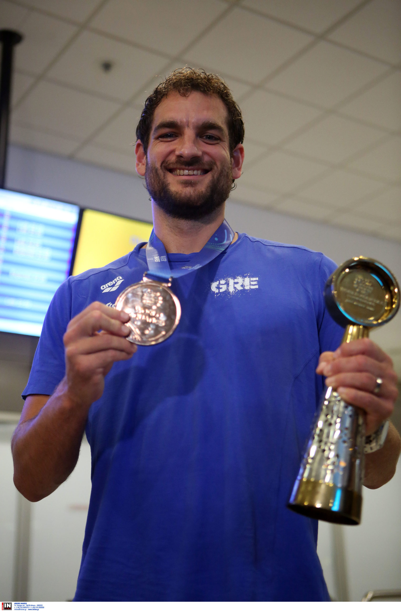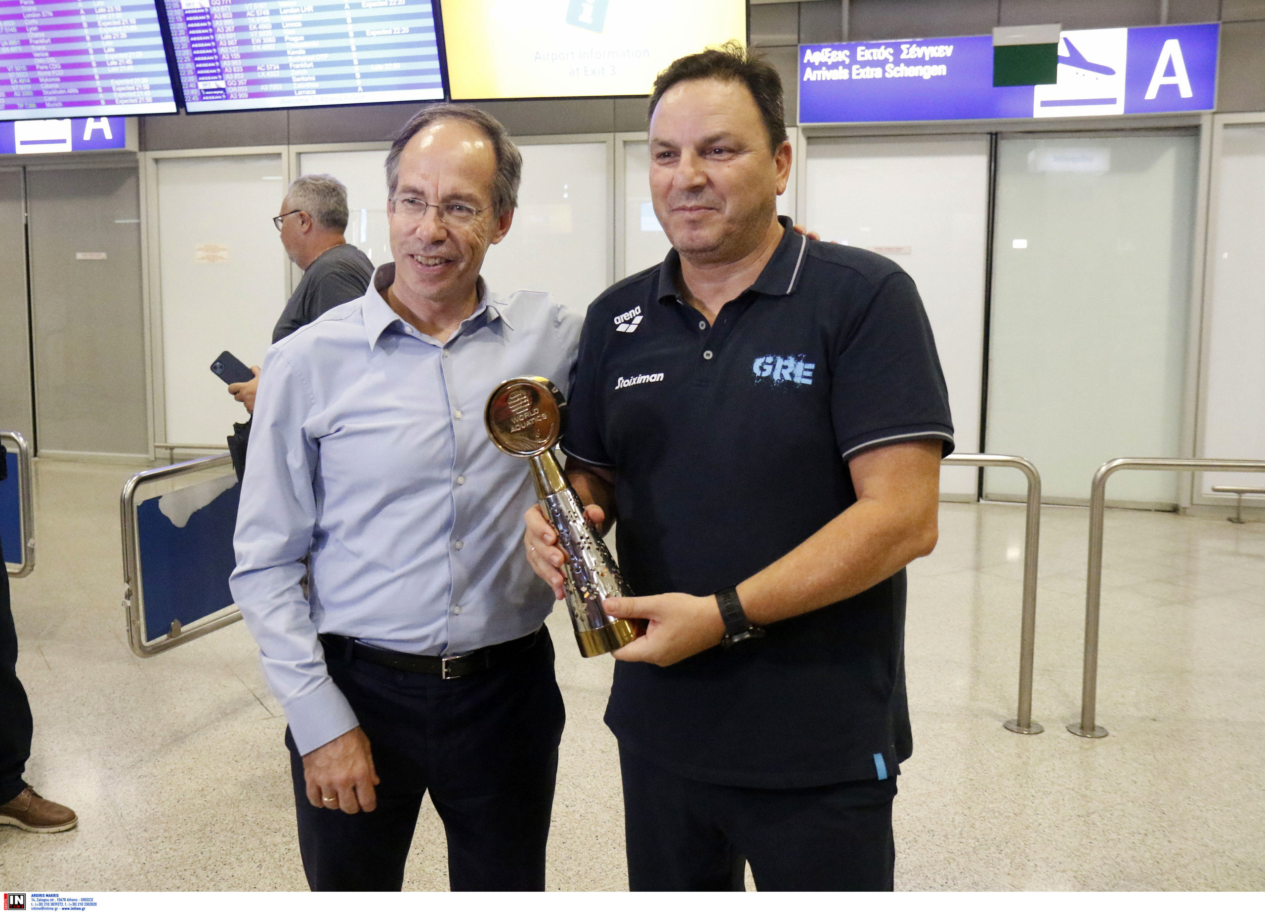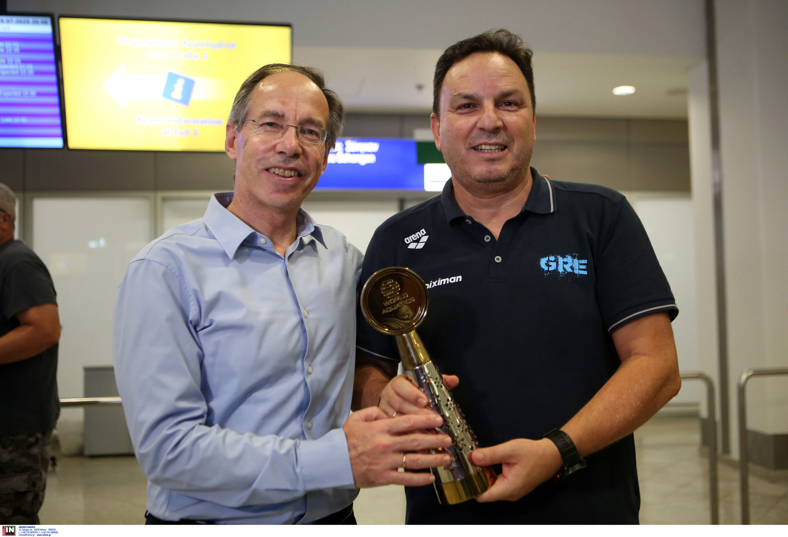 Γεμάτη χαμόγελα και περηφάνια, η Εθνική ομάδα πόλο των ανδρών επέστρεψε το βράδυ της Παρασκευής (25/7) από τη Σιγκαπούρη, έχοντας στις αποσκευές της το χάλκινο μετάλλιο από το Παγκόσμιο Πρωτάθλημα. Λίγες ώρες μετά την επιστροφή της γυναικείας ομάδας, σειρά πήραν οι άνδρες του Θοδωρή Βλάχου, οι οποίοι γνώρισαν αποθεωτική υποδοχή στο αεροδρόμιο «Ελευθέριος Βενιζέλος».