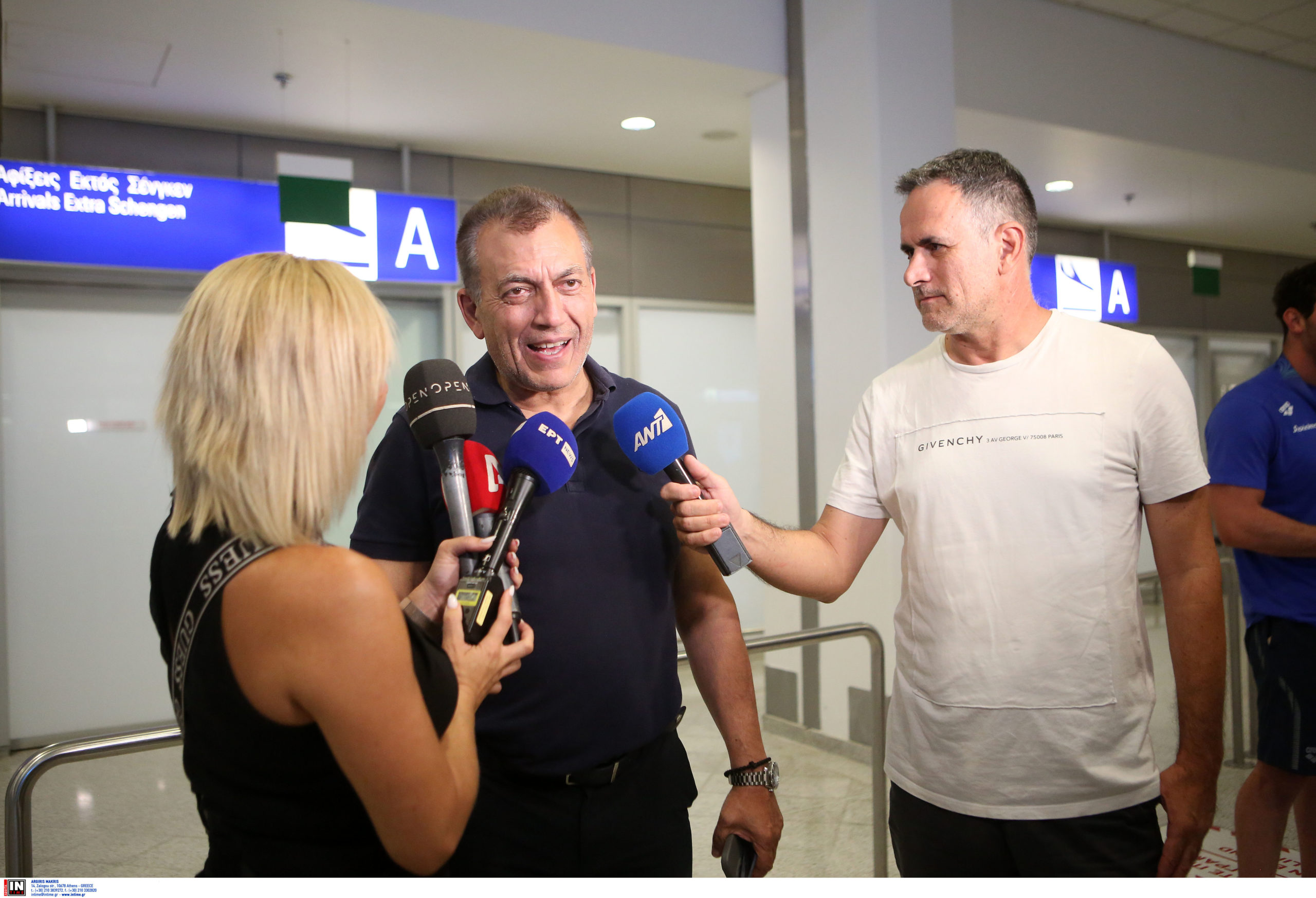 Στην αίθουσα αφίξεων, κυριάρχησαν τα χαμόγελα και οι αγκαλιές. Παρόντες στην υποδοχή ήταν ο αναπληρωτής Υπουργός Αθλητισμού, Γιάννης Βρούτσης, ο γενικός γραμματέας Αθλητισμού, Γιώργος Μαυρωτάς, συγγενείς, φίλοι, αλλά και μικροί φίλαθλοι, οι οποίοι δεν έχασαν την ευκαιρία να φωτογραφηθούν με τους αγαπημένους τους αθλητές.